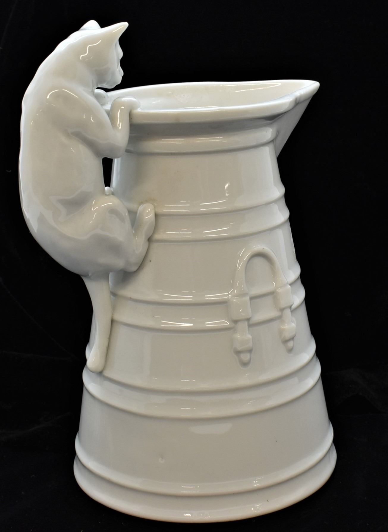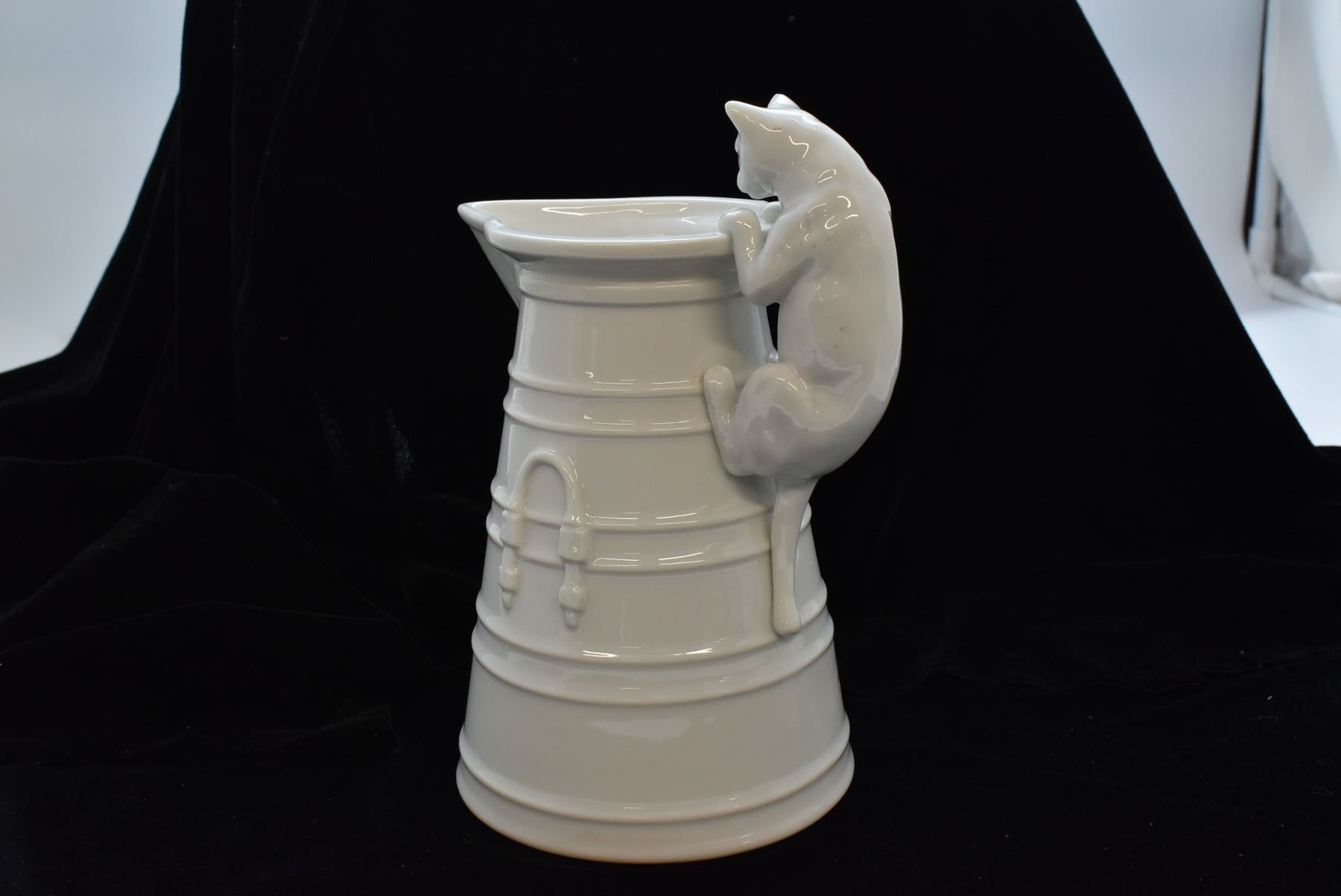 Vintage Ceramic Milk Pitcher W/ Cat Handle by Haldon Group, measures 5.5'' x 8'' and is marked on the bottom