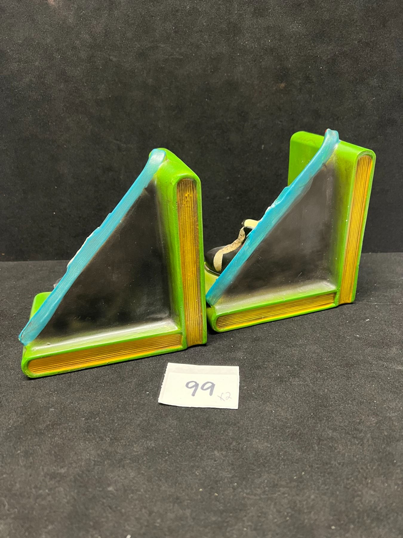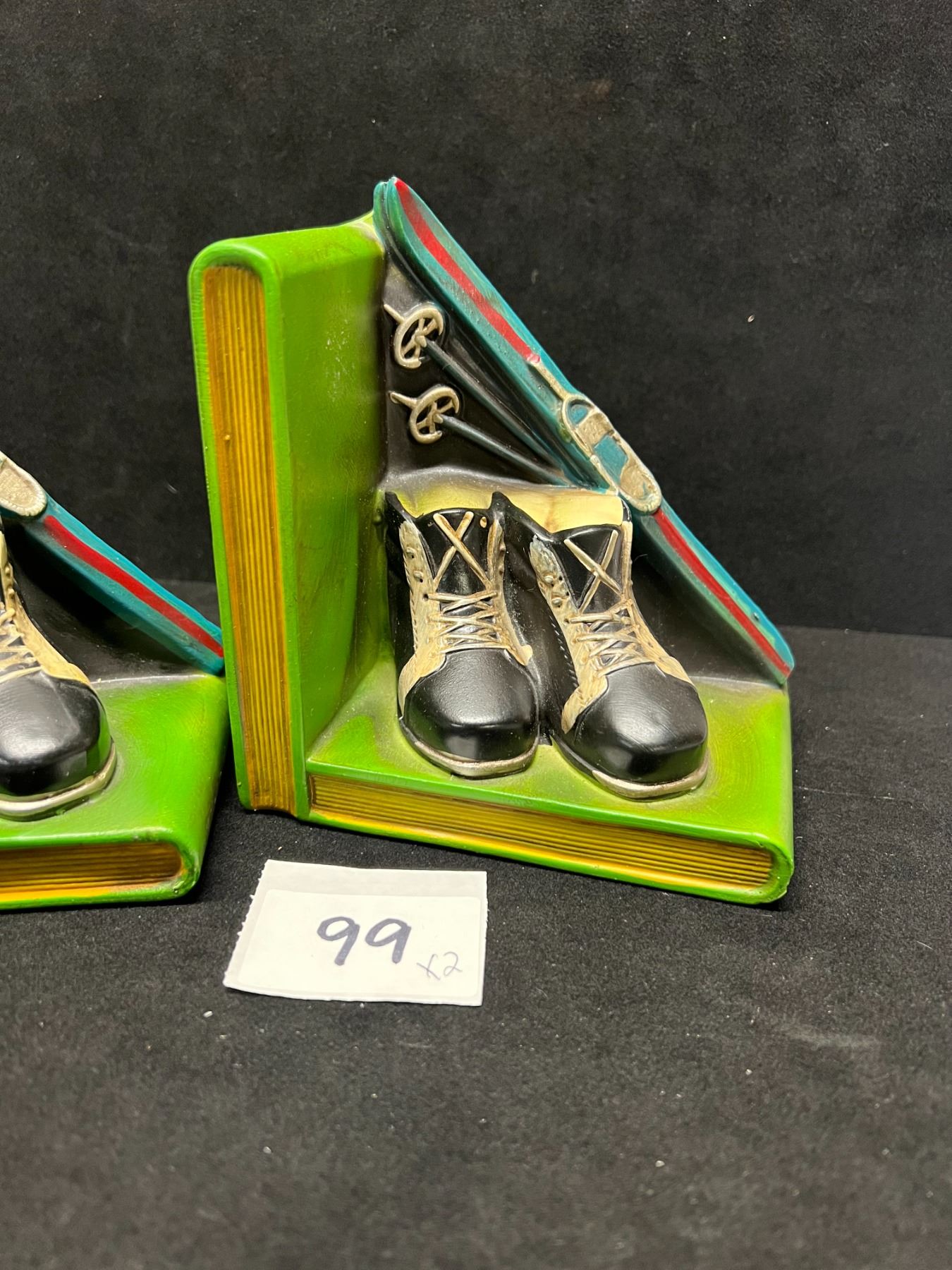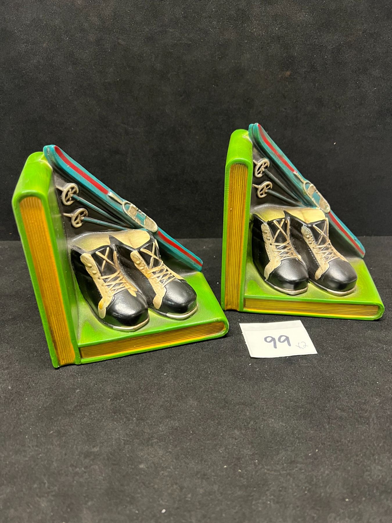 Vintage Ceramic Skiing Skis Winter Theme Book Ends Appr: 5"W 5.25"T 3.5"D