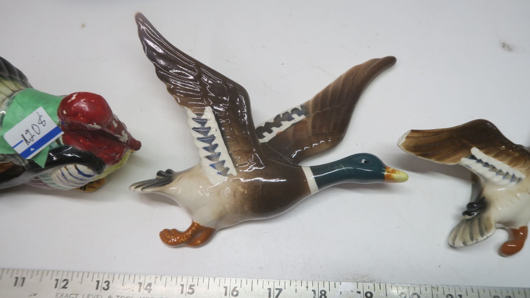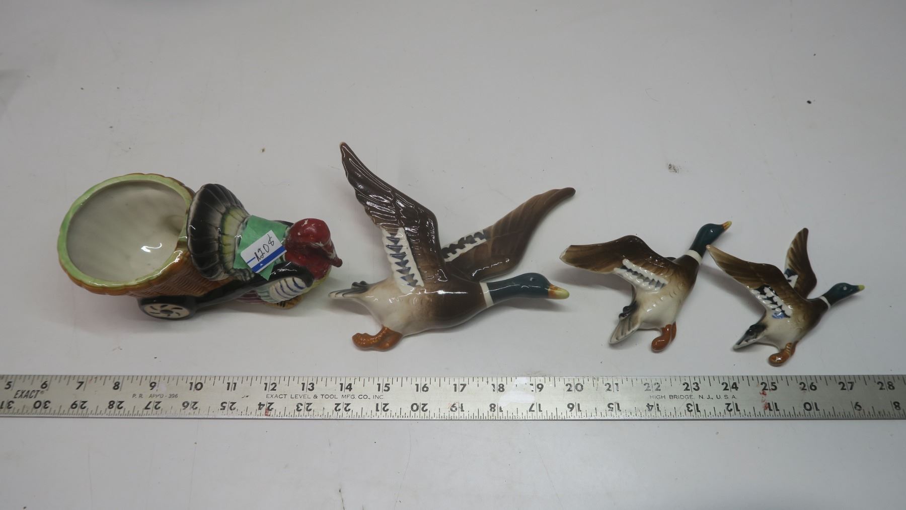 Vintage Ceramic Turtle Pulling Cart and 3 Ceramic Flying Ducks - 1 Broken