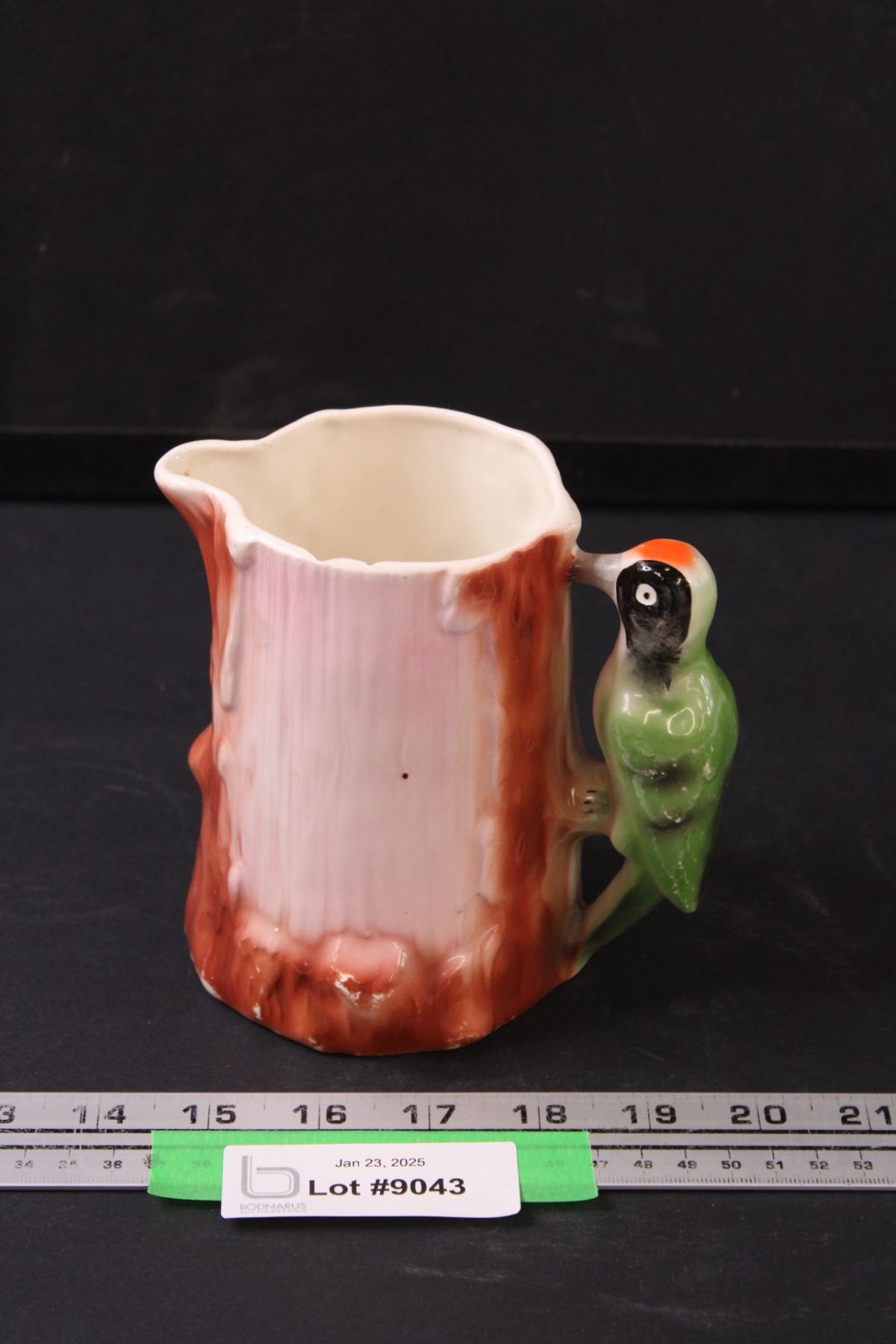 Vintage Ceramic Woodpecker Milk Pitcher - Made in Czechoslovakia - Some Chips - 5" Tall