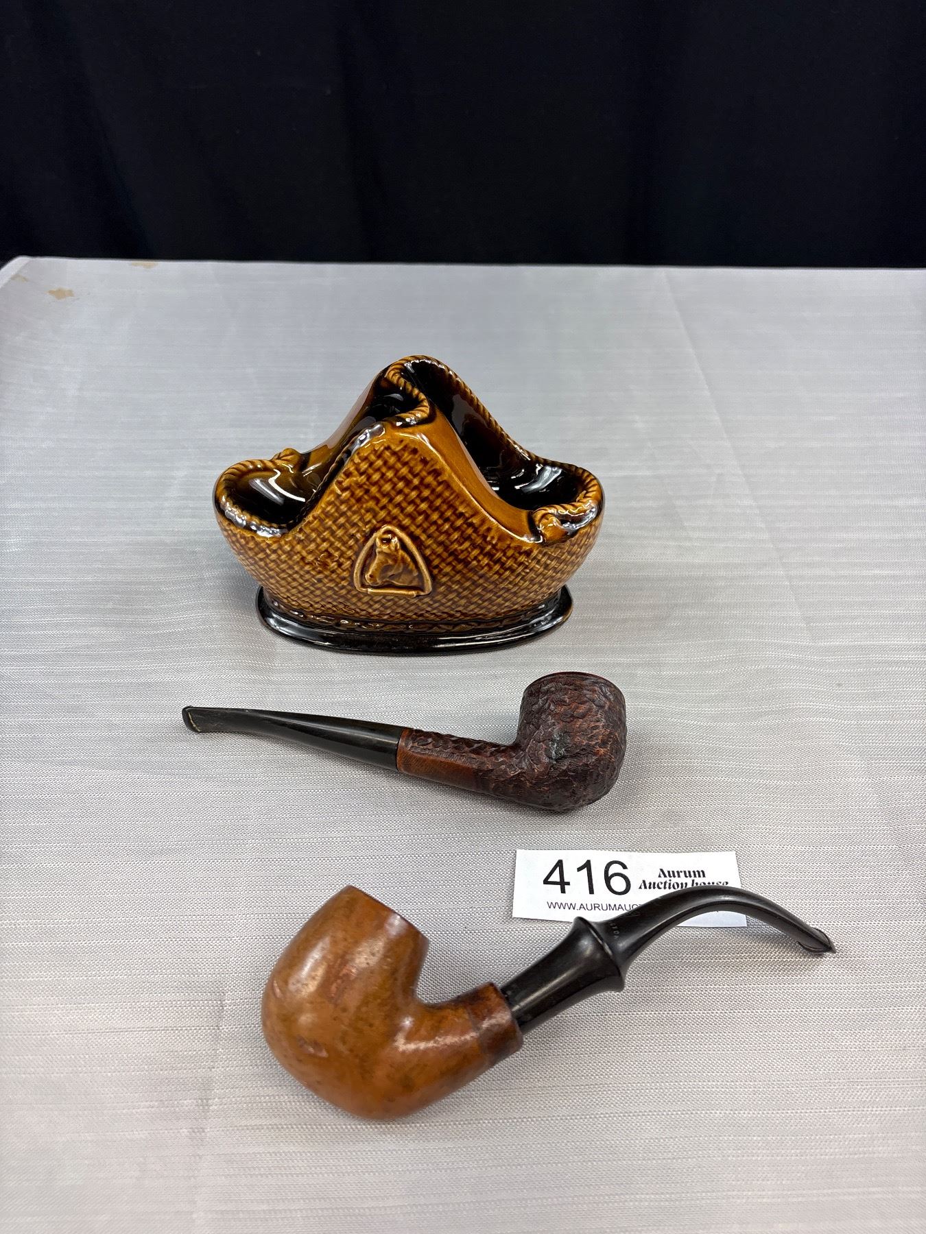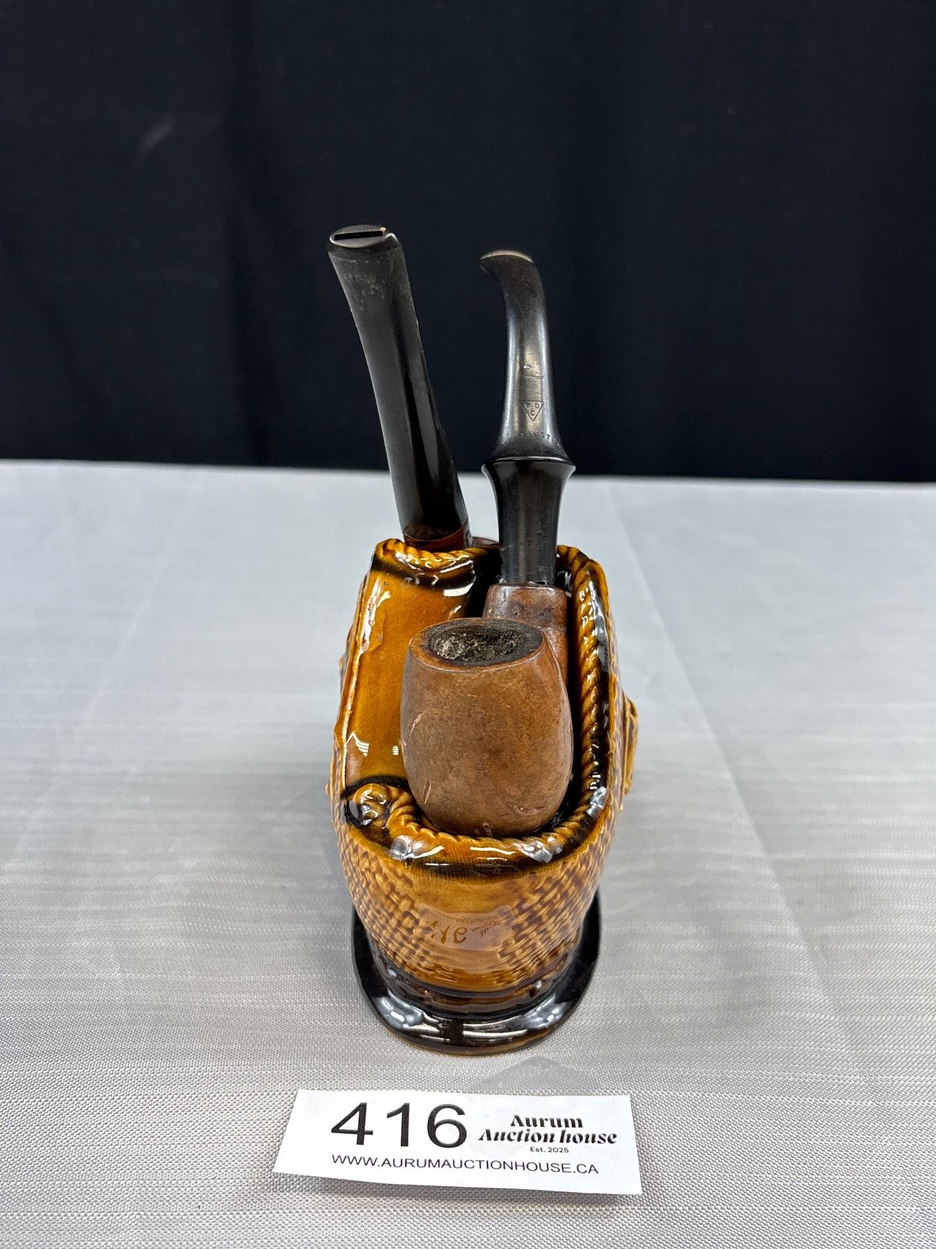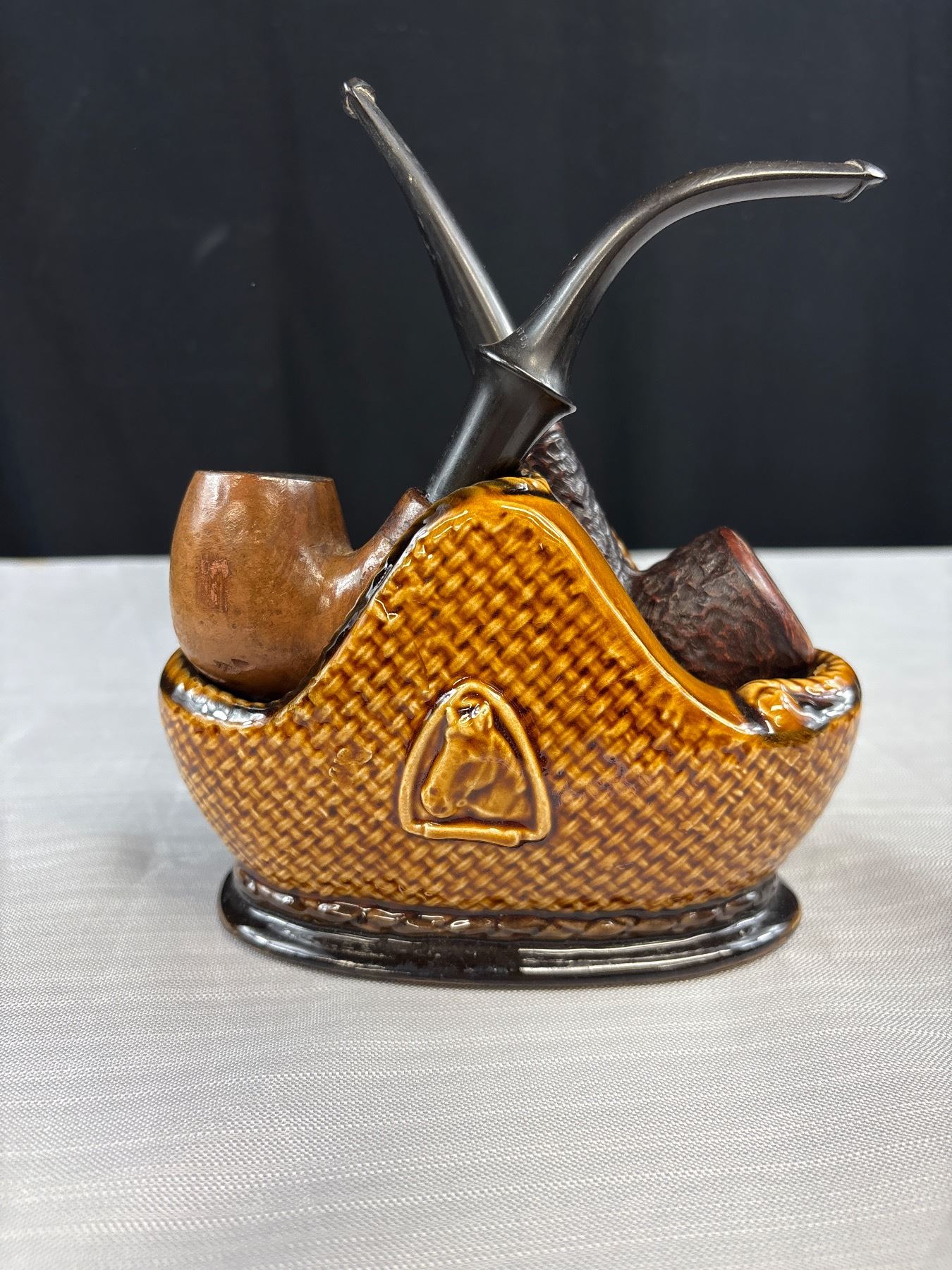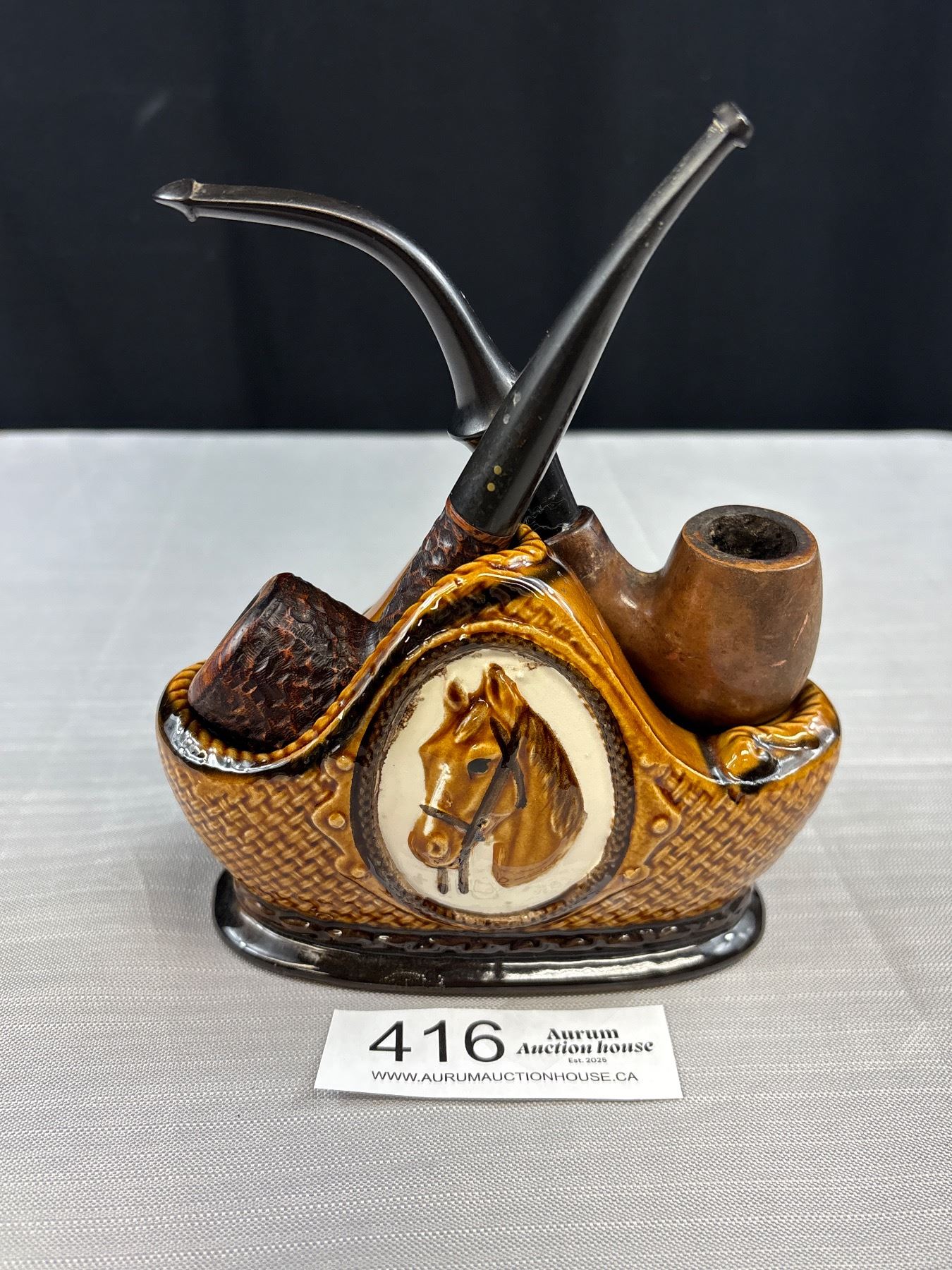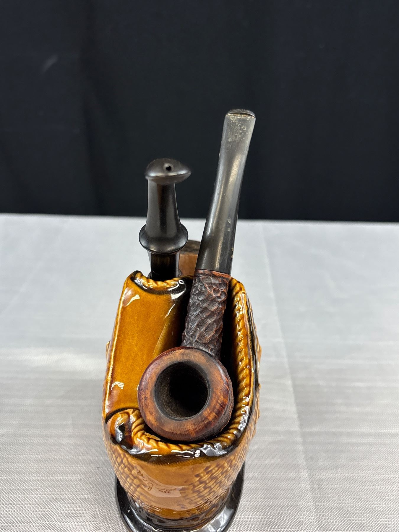 Vintage Cermaic Pipe Rest w/ 2 Pipes