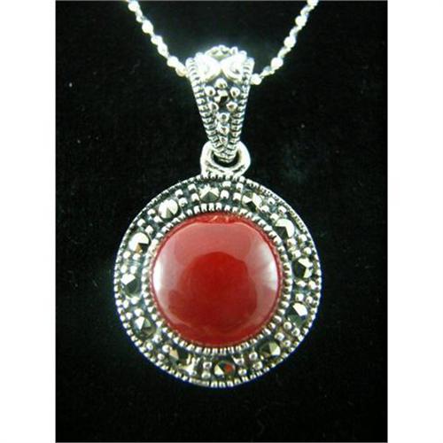 <STRONG>Metal:</STRONG> .925 Pure Sterling Silver <BR> <STRONG>Weight:</STRONG> 3 Grams <BR> <STRONG>Stones:</STRONG> Red Chalcedony & Marcasite<BR>