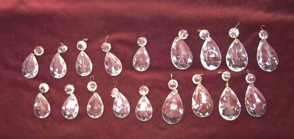 Vintage Chandelier Lusters, includes ten small measuring 2'' and eight large measuring 2.75''