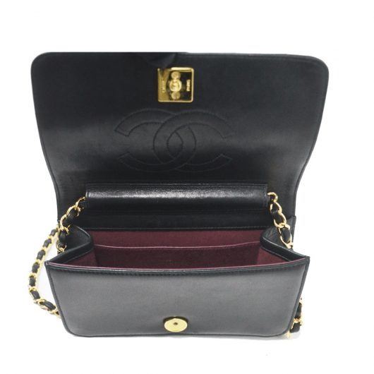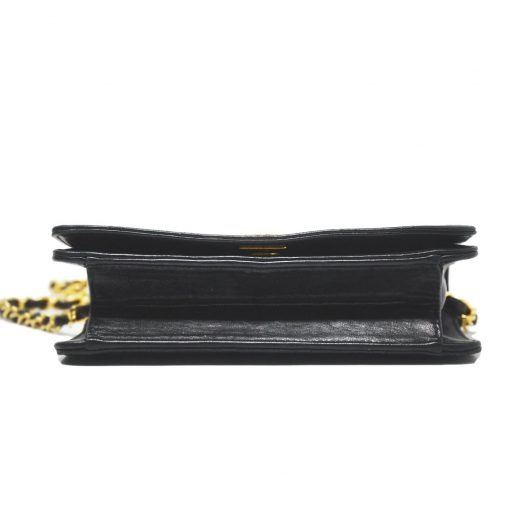 Style: Vintage Black WOC Wallet On Chain Lambskin Leather Shoulder Bag