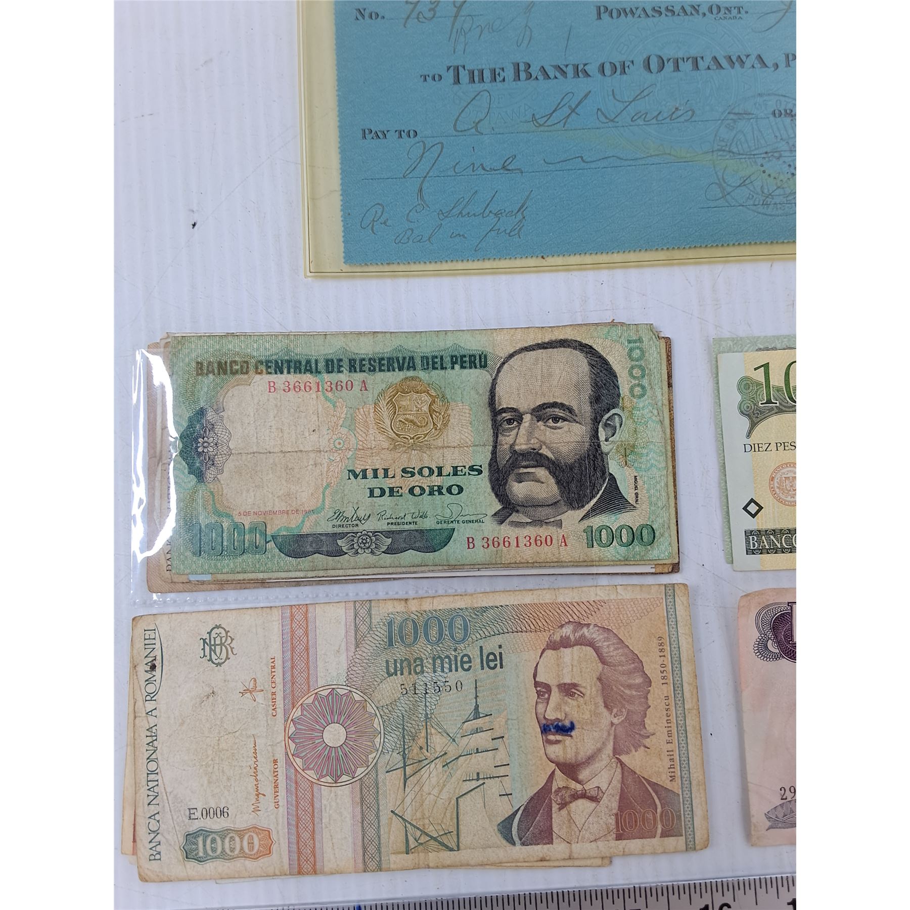 Vintage Check, Romanian, Peru, Argentinian, Misc Banknotes - As Is CANNOT AUTHENTICATE