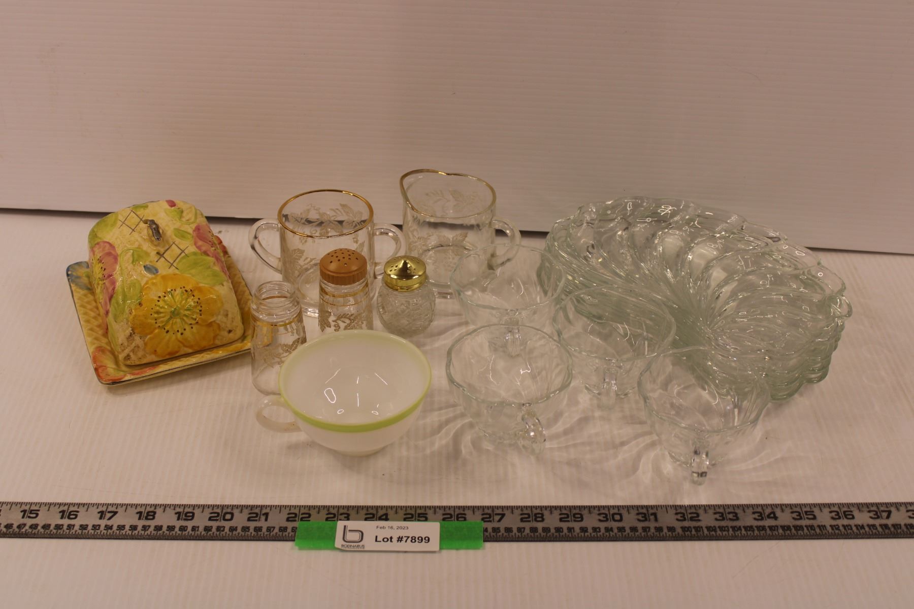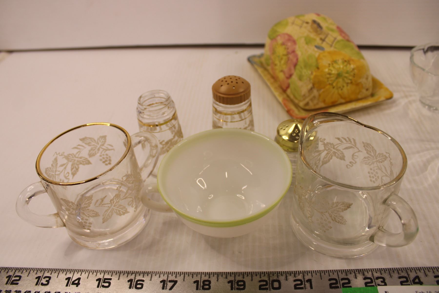 Vintage Cheese Dish, Tea Cups with Snack Trays + Miscellenious