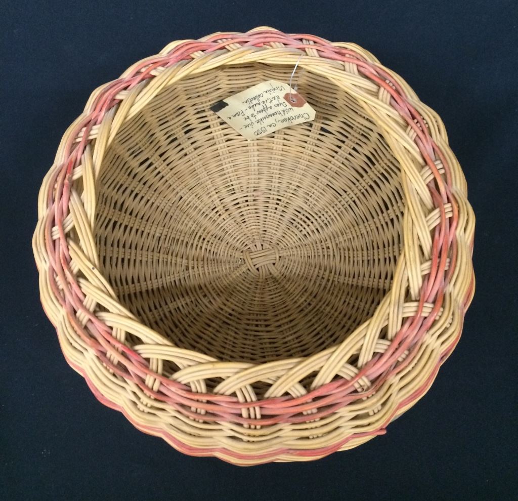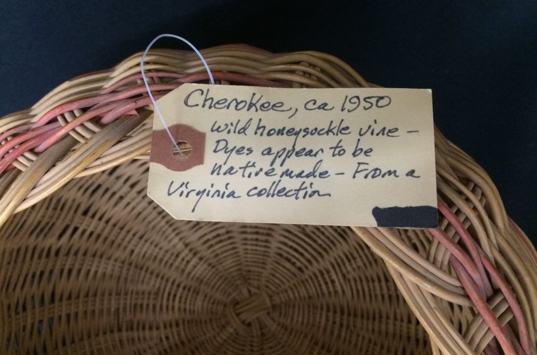 There is an old tag attached which says, “Cherokee, ca 1950. Wild Honeysuckle vine - dyes appear to be Native made. From a Virginia Collector.” Measures 10.5” across and 6.5” deep. In good condition for its age.