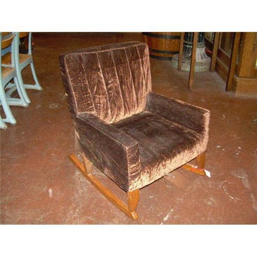 Up for sale is a brown upholstered child's rocker, probably from the 1940's or 50's. The upholstery I believe is velveteen and there are no rips or tears at all in the fabric. The rocker is slightly dirty, but it looks like it will clean up nicely. It measures 23" tall and would be a great size of a young girl to rock her dolls to sleep. If you have any other questions, please email us. Thanks for looking!!!