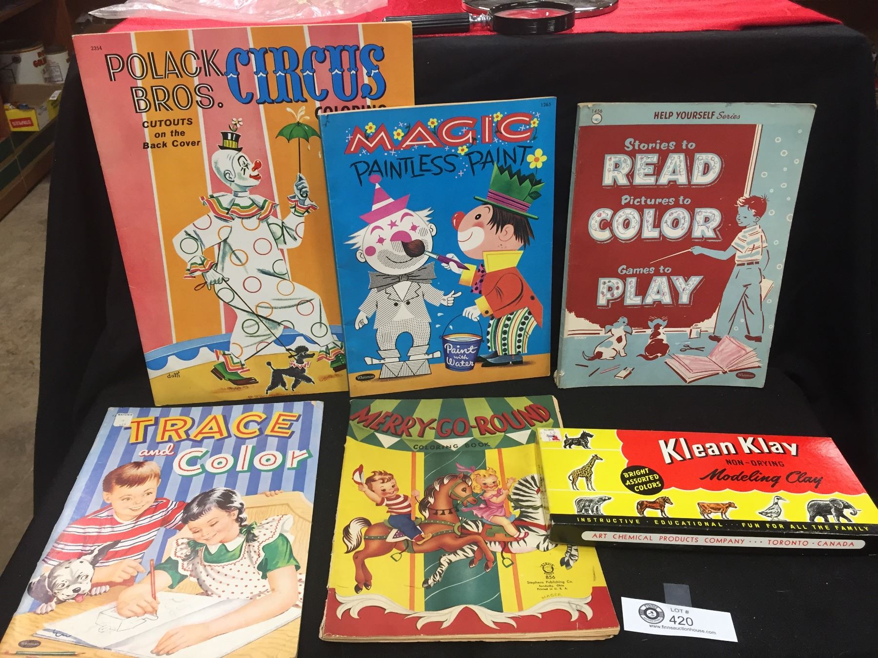 Vintage Children's Lot. Colouring Books, Unused Modelling Clay. From 1960's. Nice Graphics on Box