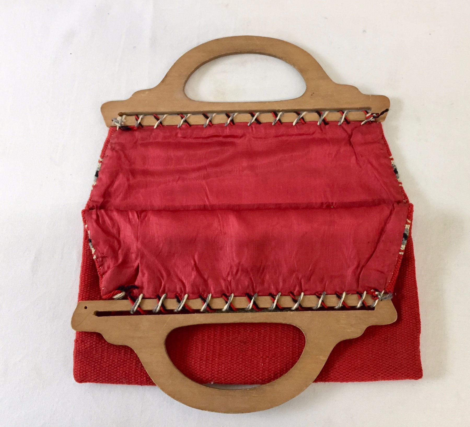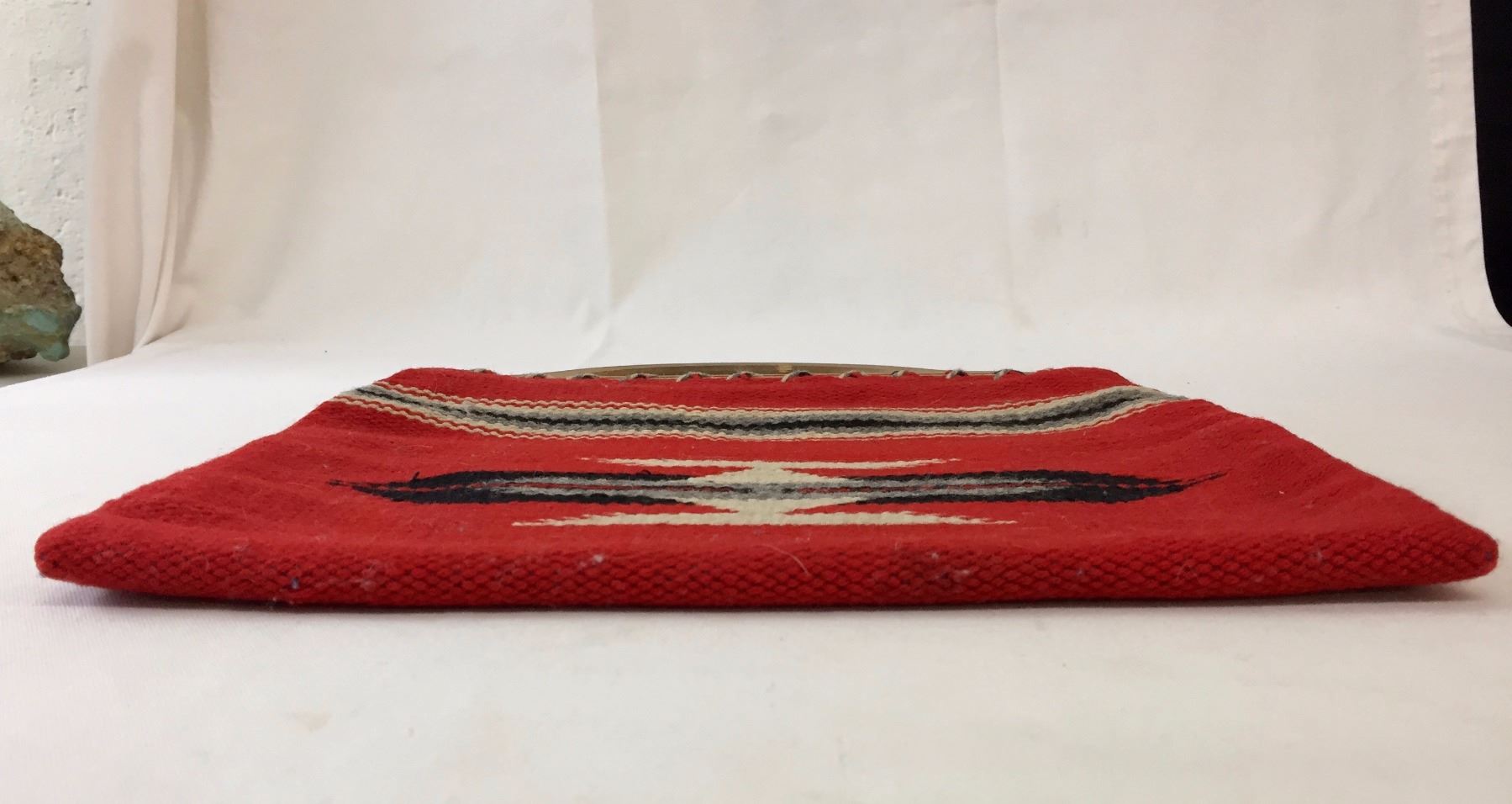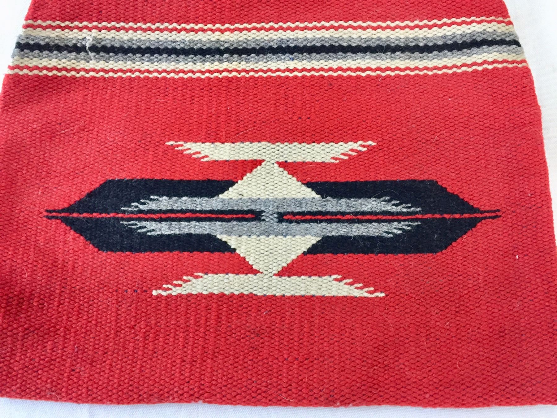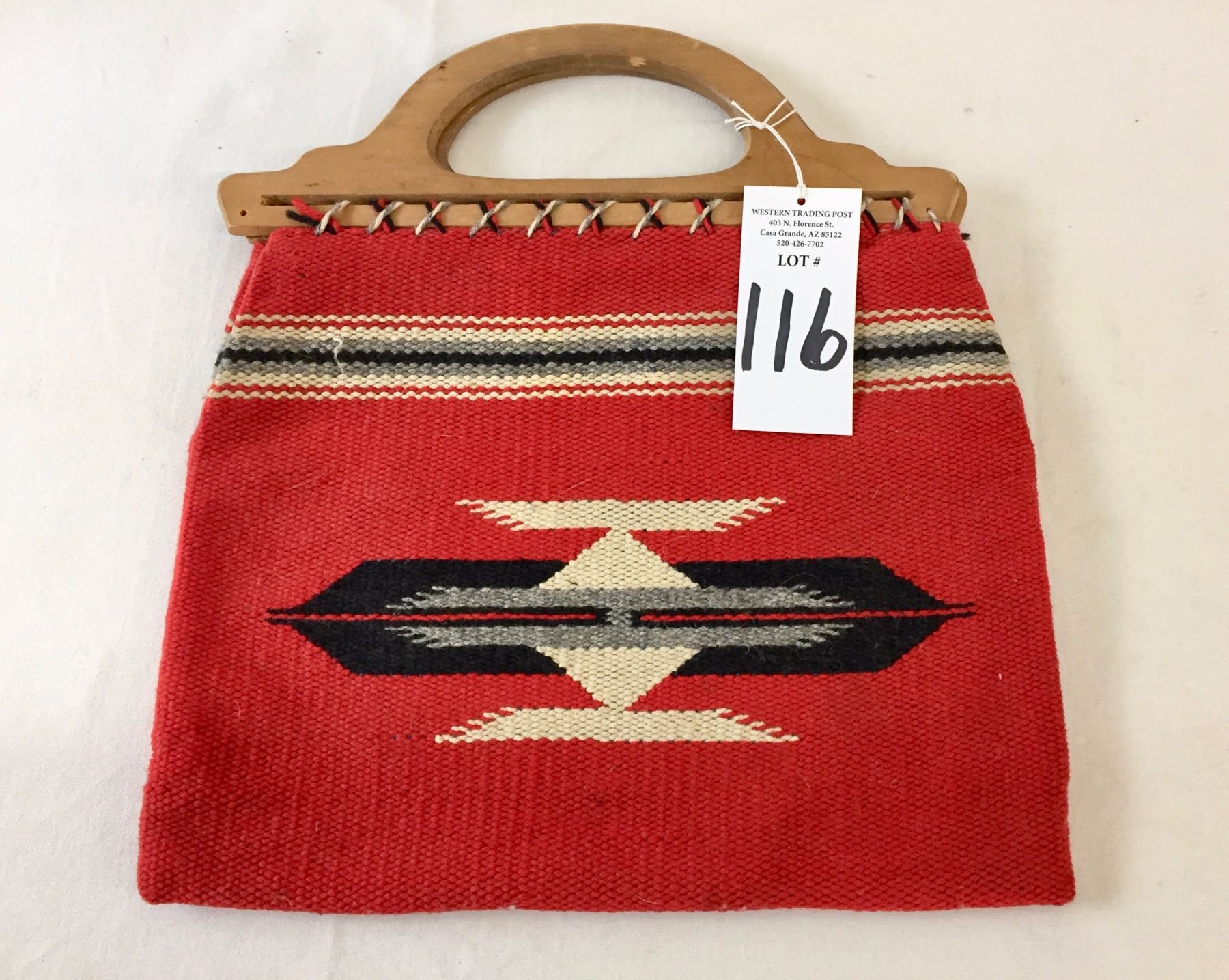 Description: Nice, vintage Chimayo textile purse with wooden handles- has a wallet/keys pocket and one pen pocket on the inside of the purse. Maker: Unknown Chimayo weaver. Approx. Age: Vintage. Size: 15 1/2” l (including handles) x 13 3/4” w. Condition: Good for its age, normal wear expected. Please look closely at the pictures - they are an important part of our description. Shipping: There will be a $7 handling / packaging fee for shipping this lot. The actual cost of postage will be added on top of that.