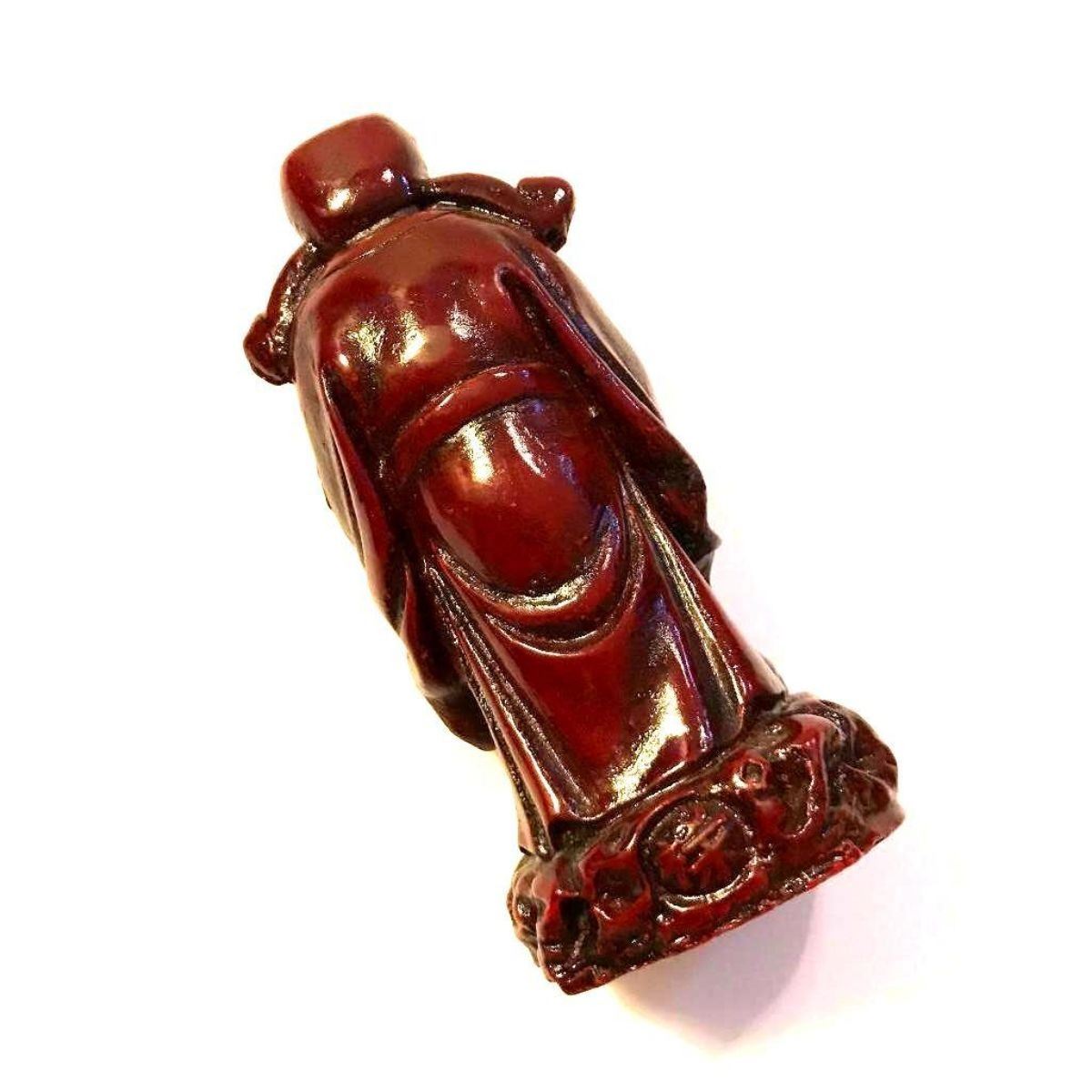 Vintage Chinese oxblood-colored statue figure of the star god of status, Lu Xing. Resin & stone with high gloss.  5"H X 2" W X 2" D. One of the 3-star gods Fu Lu Shou, Lu gives blessings when taking difficult exams & competing for the best high paying jobs. This is all about great career success, authority, fame & fortune leading to wealth. It was told that those who studied hard would receive Lu, which is a high salary in a much-respected job. Those receiving the best positions were the ones blessed by Lu Xing, also associated with helping childless couples.