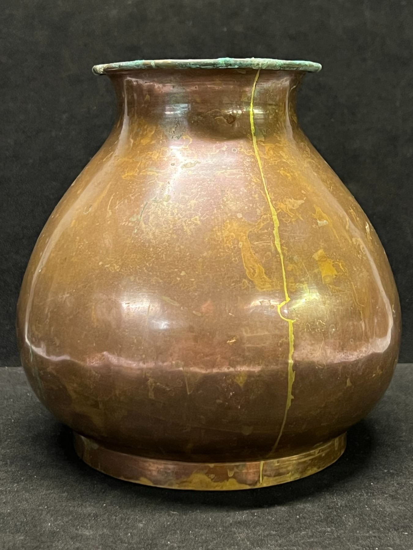 Vintage Chinese rustic Copper Vase Approx: 6"T 5.5"W
