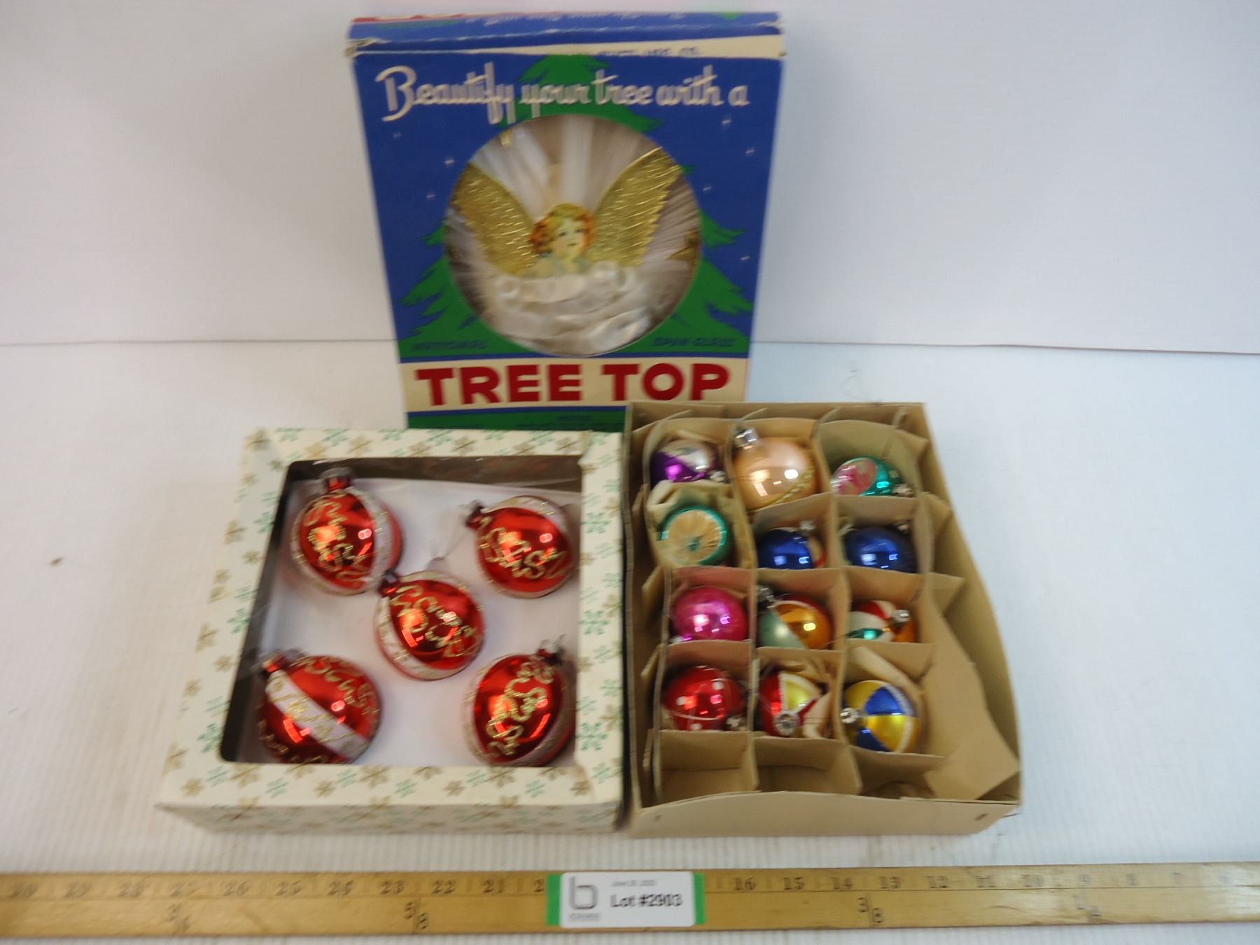 Vintage Christmas- Tree Top and (2) Boxes of Bulbs