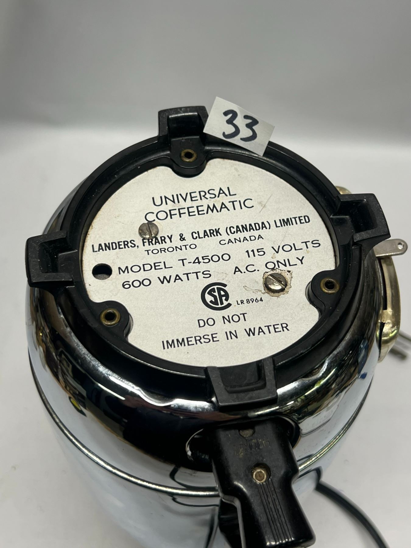 Vintage Chrome Deco Electric Universal Coffeematic Coffee Maker (Approx: 11"T 9"W)