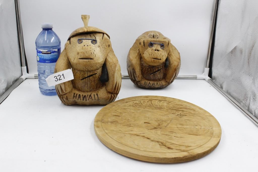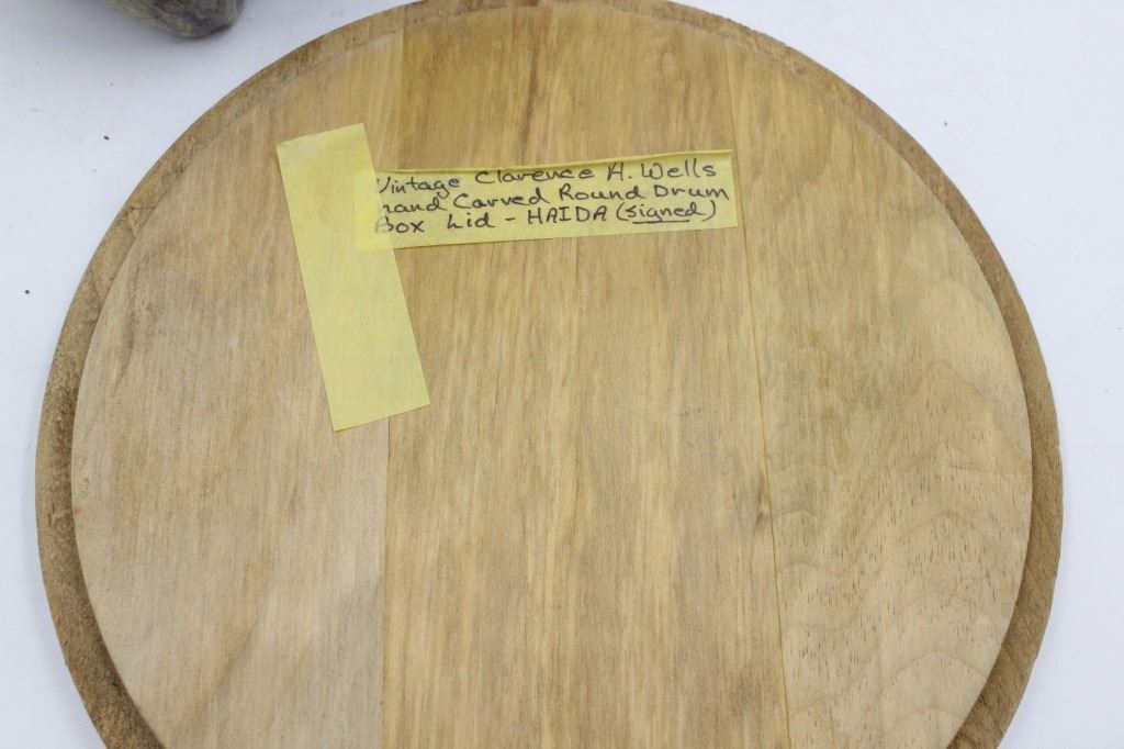 Drum Box Lid (Picture) Signed HAIDA 2 Vintage Wooden Monkey Hawaii Souvenirs