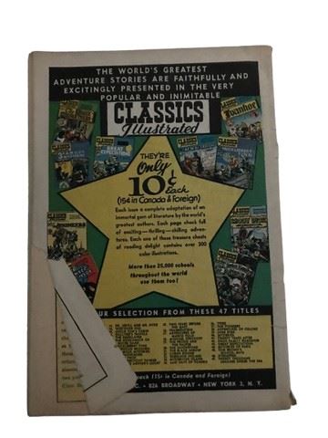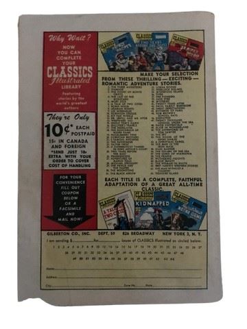Step into the golden age of illustrated literature with this captivating set of 7 Classics Illustrated comics from the 1940s. Each issue brings timeless literary masterpieces to life through vivid artwork and storytelling, offering a nostalgic glimpse into mid-century publishing and graphic design.