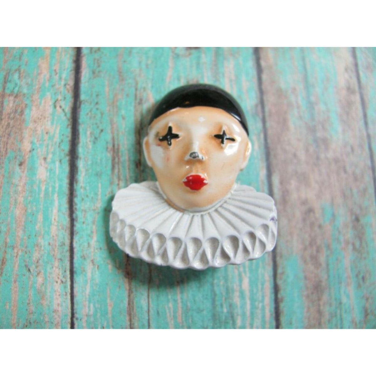 Vintage enameled Clown Pierrot brooch pin. 1 1/8" X 1 1/4".