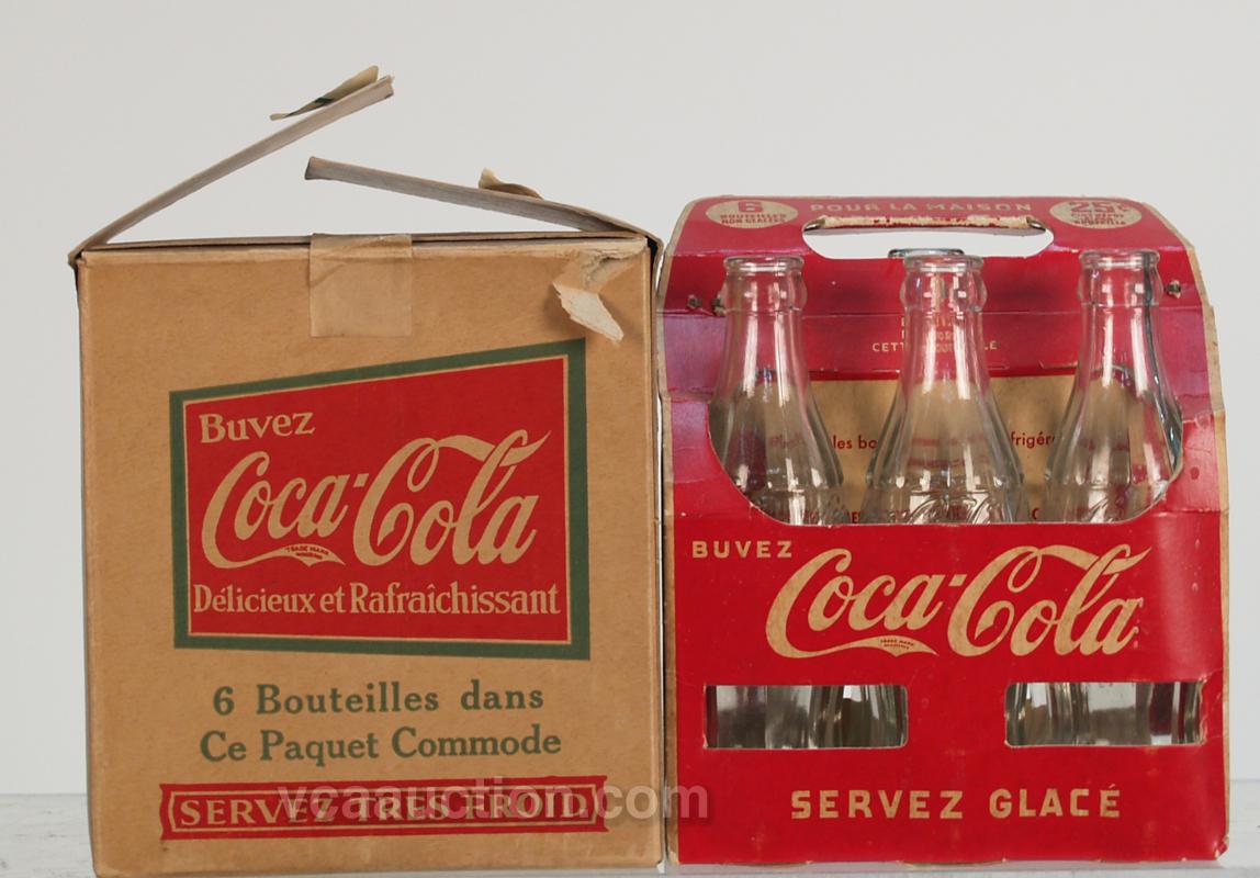 Vintage Coca Cola Cardboard 6 Pack Bottles c1939 "Servez Glace" Internal & External Carrier w/ 6 Canada Coca Cola bottles