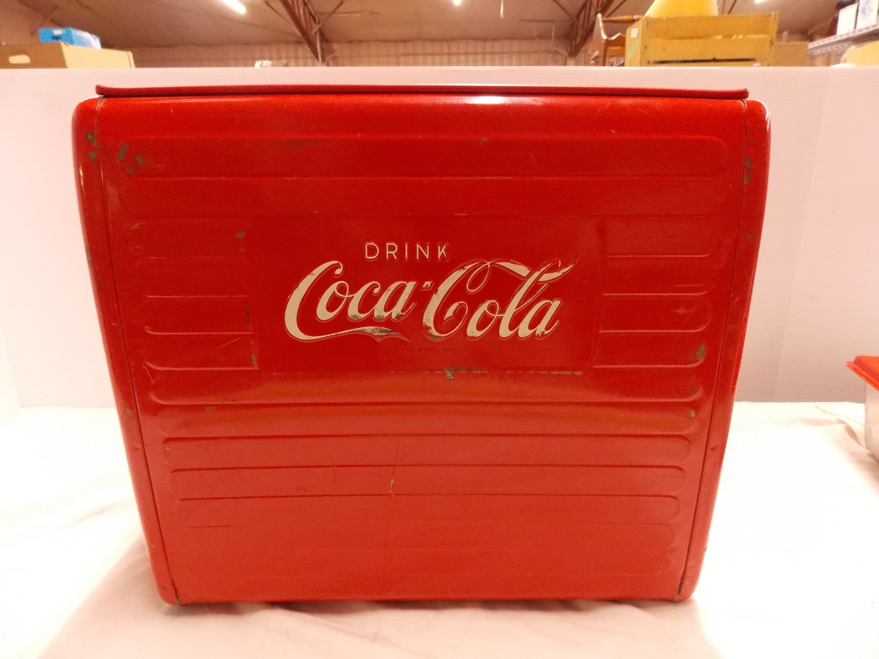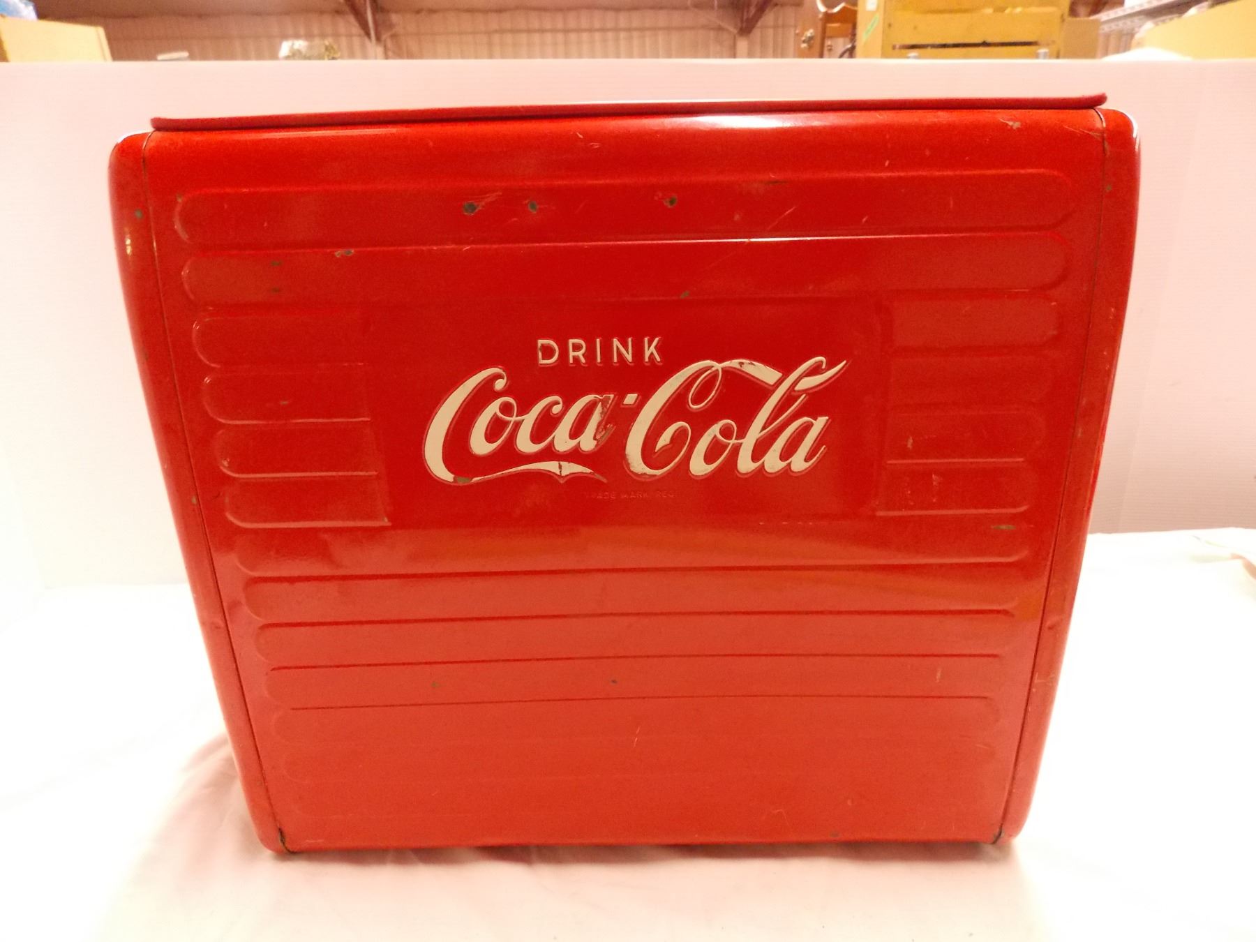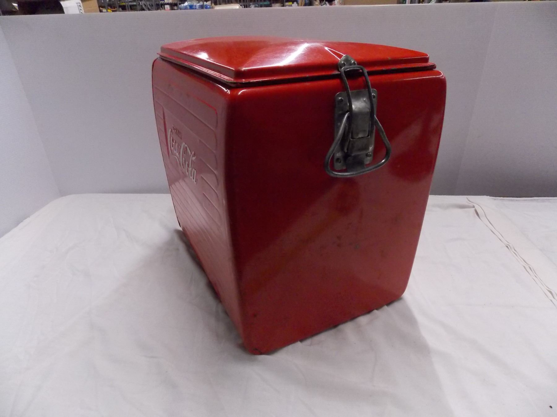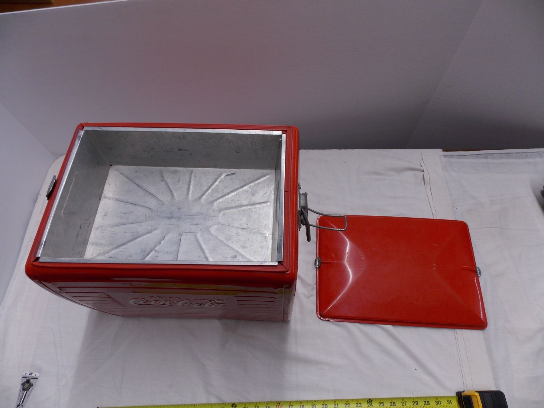 Vintage Coca Cola Cooler with Metal tray + tin lining inside
