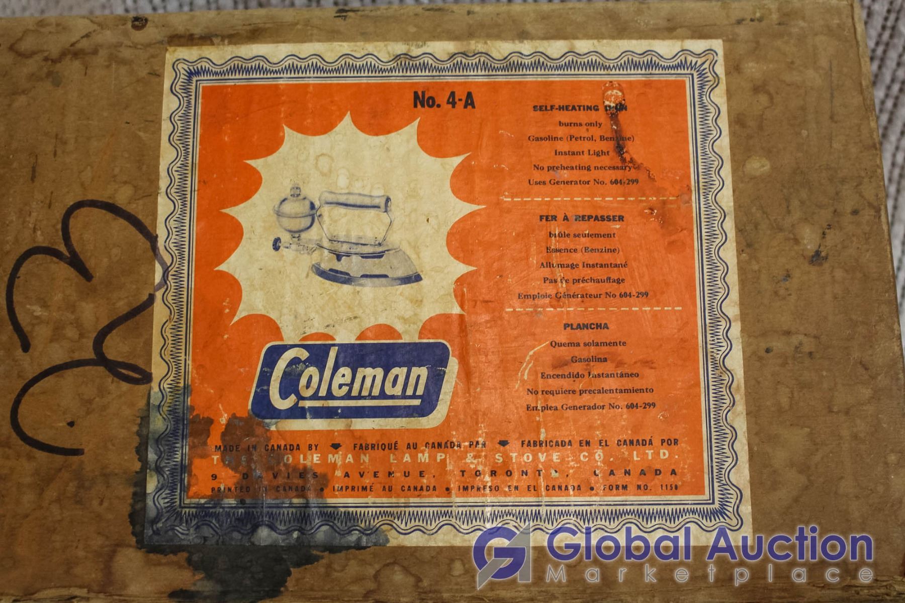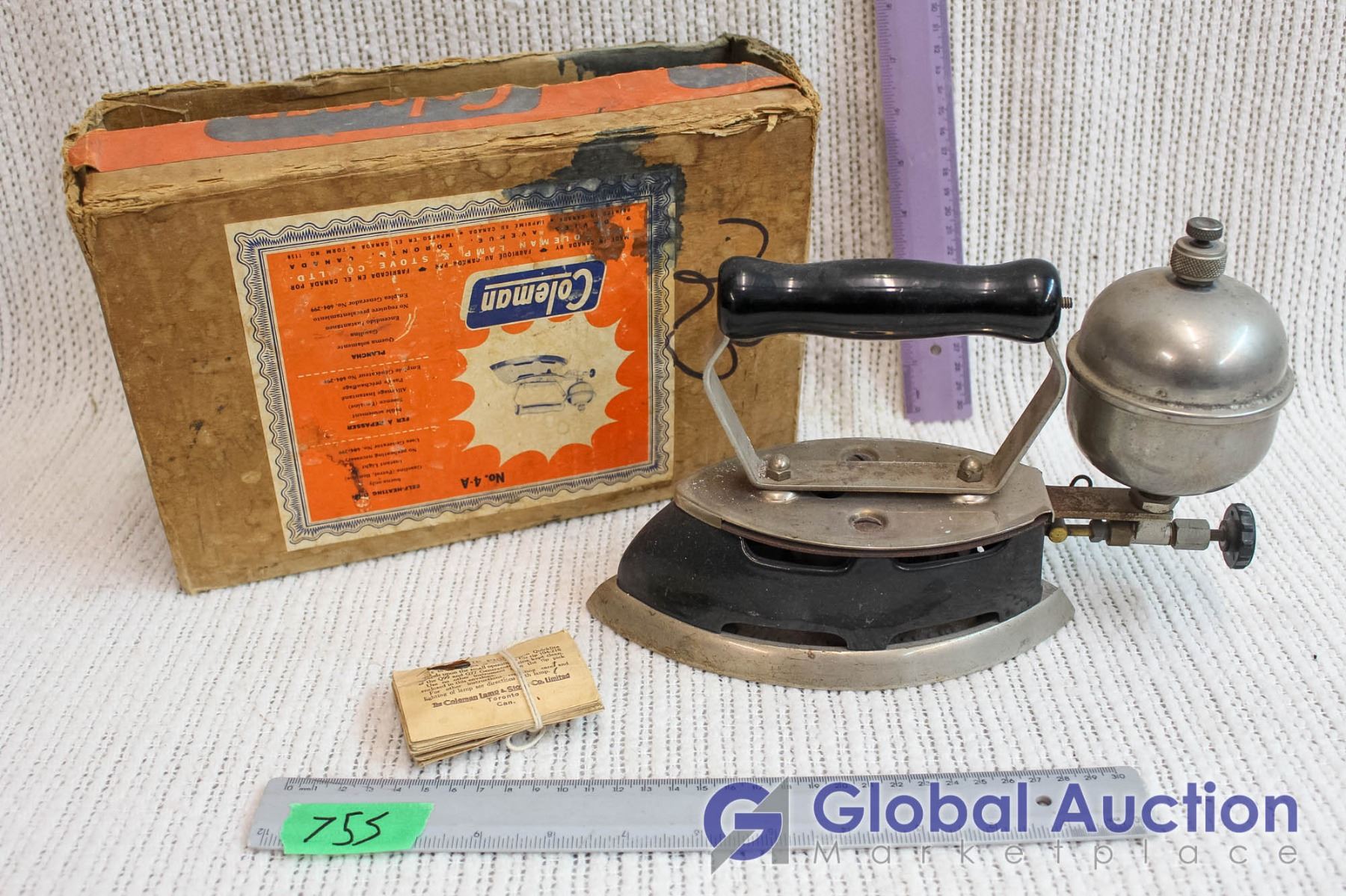 Vintage Coleman Gas Iron & Bundle of Coleman Tip Picks in Packaging