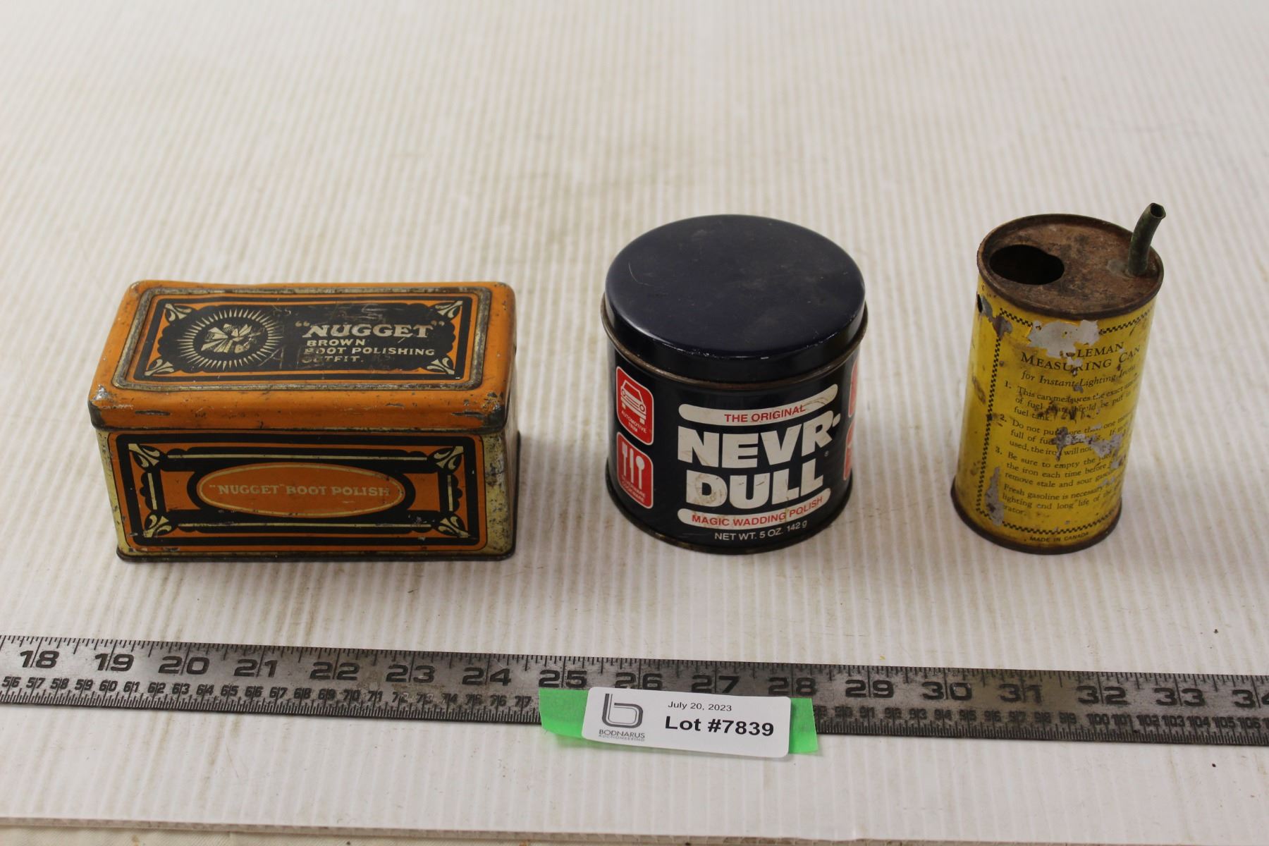 Vintage Coleman Measuring Can, Early Nugget Brown Boot Polish Tin
