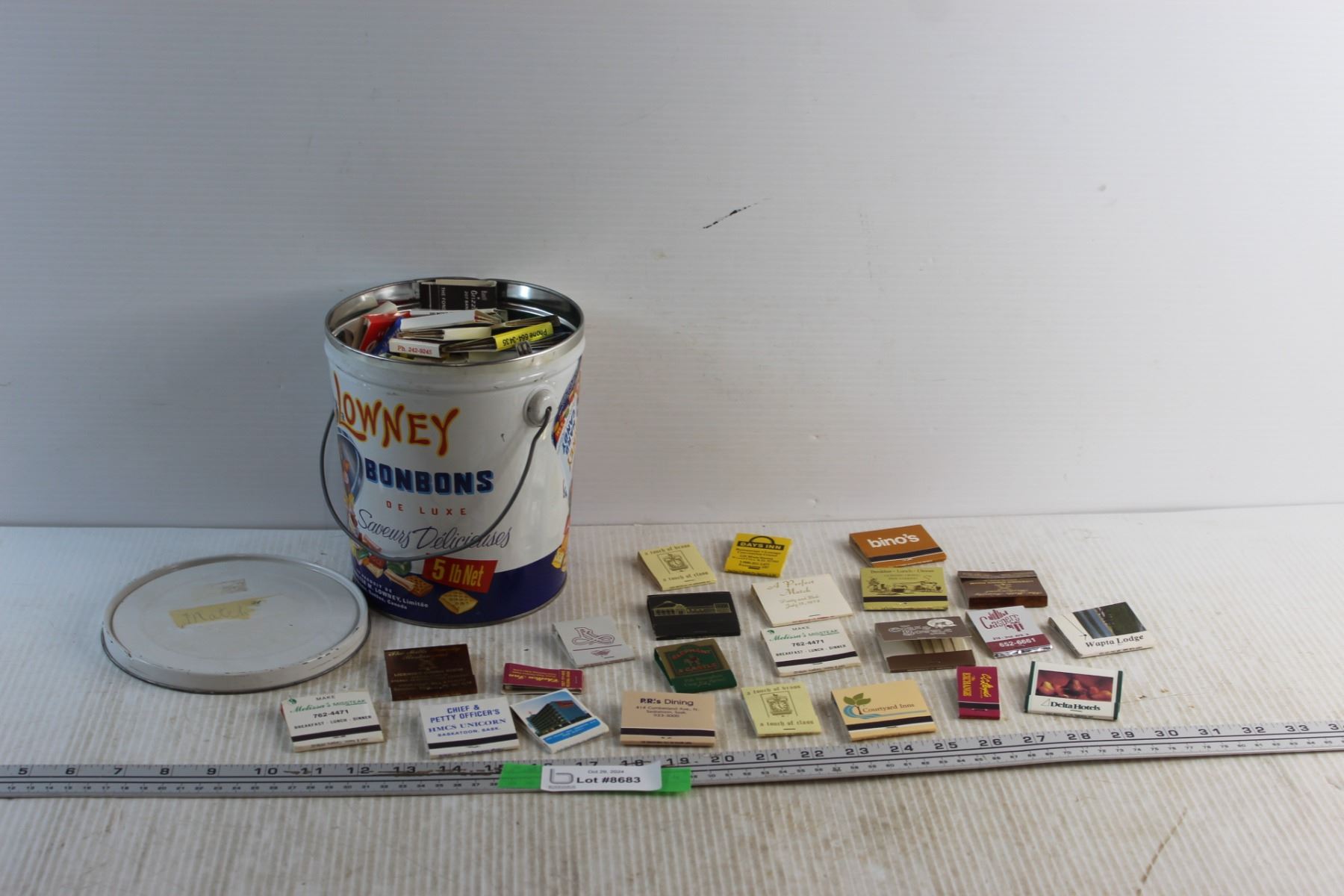 Vintage Collectible Matches and Lowney Tin Bucket