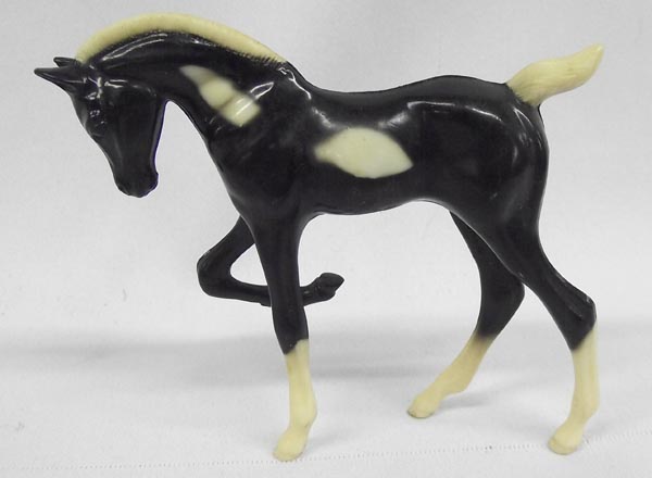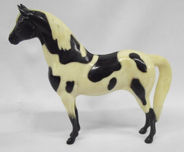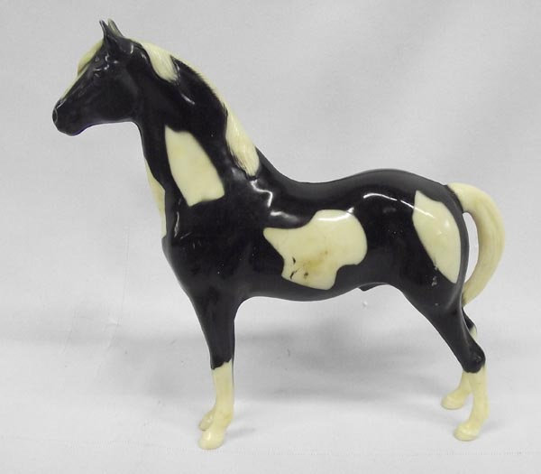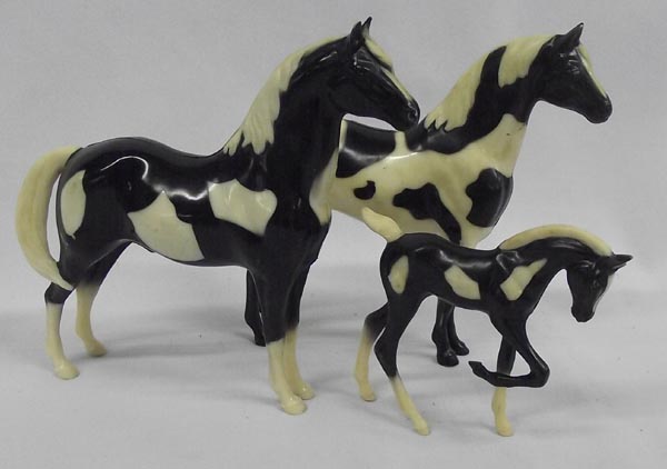 Vintage collection of 3 paint ponies, male, female and colt, molded plastic, not marked. Largest horse measures approx. 6 1/2''H x 7''L x 2''D. Buyers Pay Actual Shipping and Handling Charges(see terms and conditions for more information).