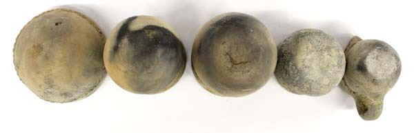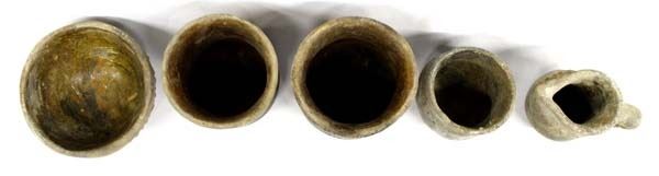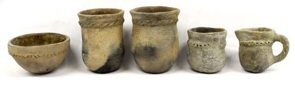 Antique/Vintage Collection of 5 Native American Navajo Utilitarian Pottery, largest measures 4'' x 5.25'', included are three ceremonial drum pots, nice thick wall pieces