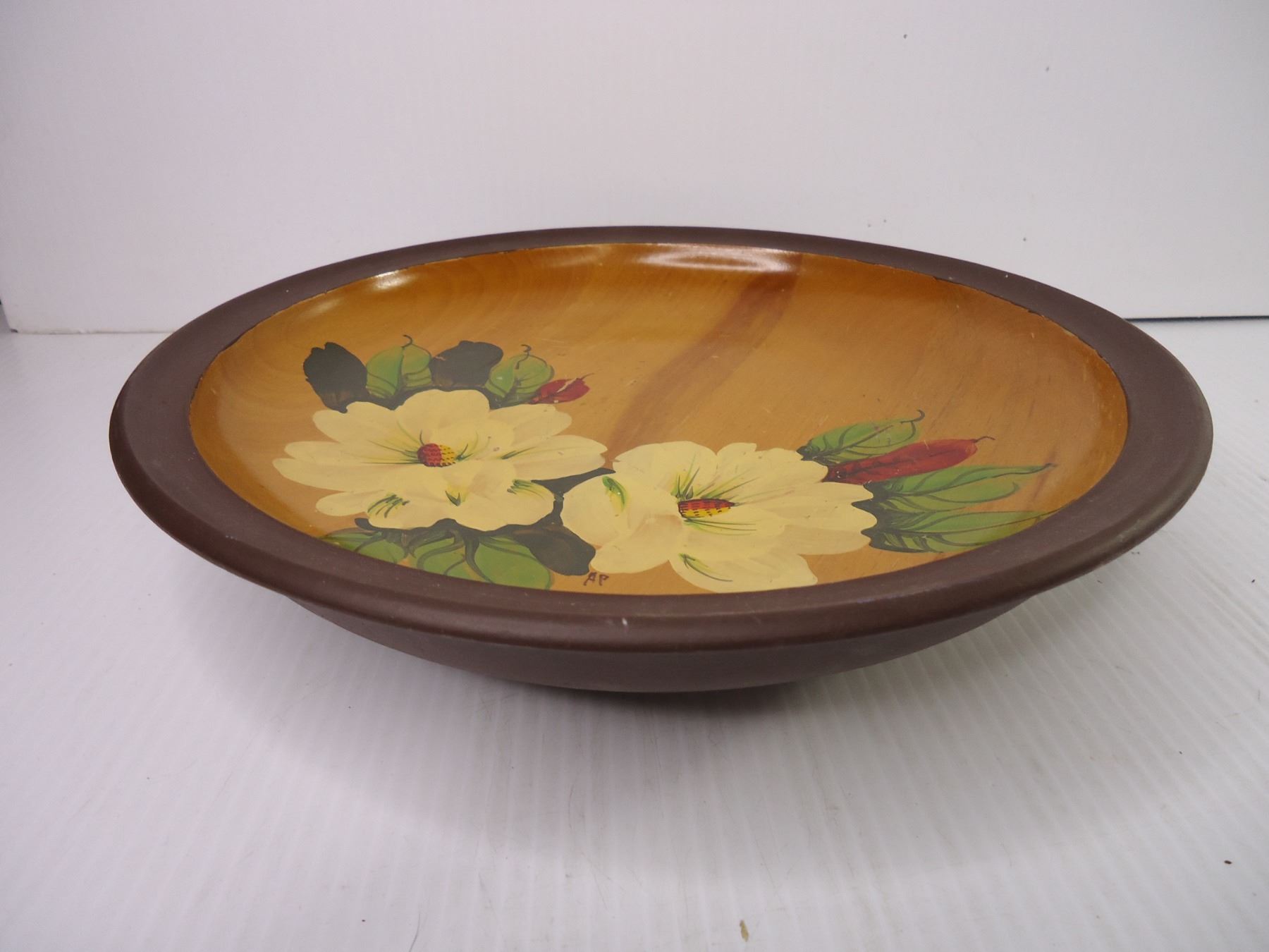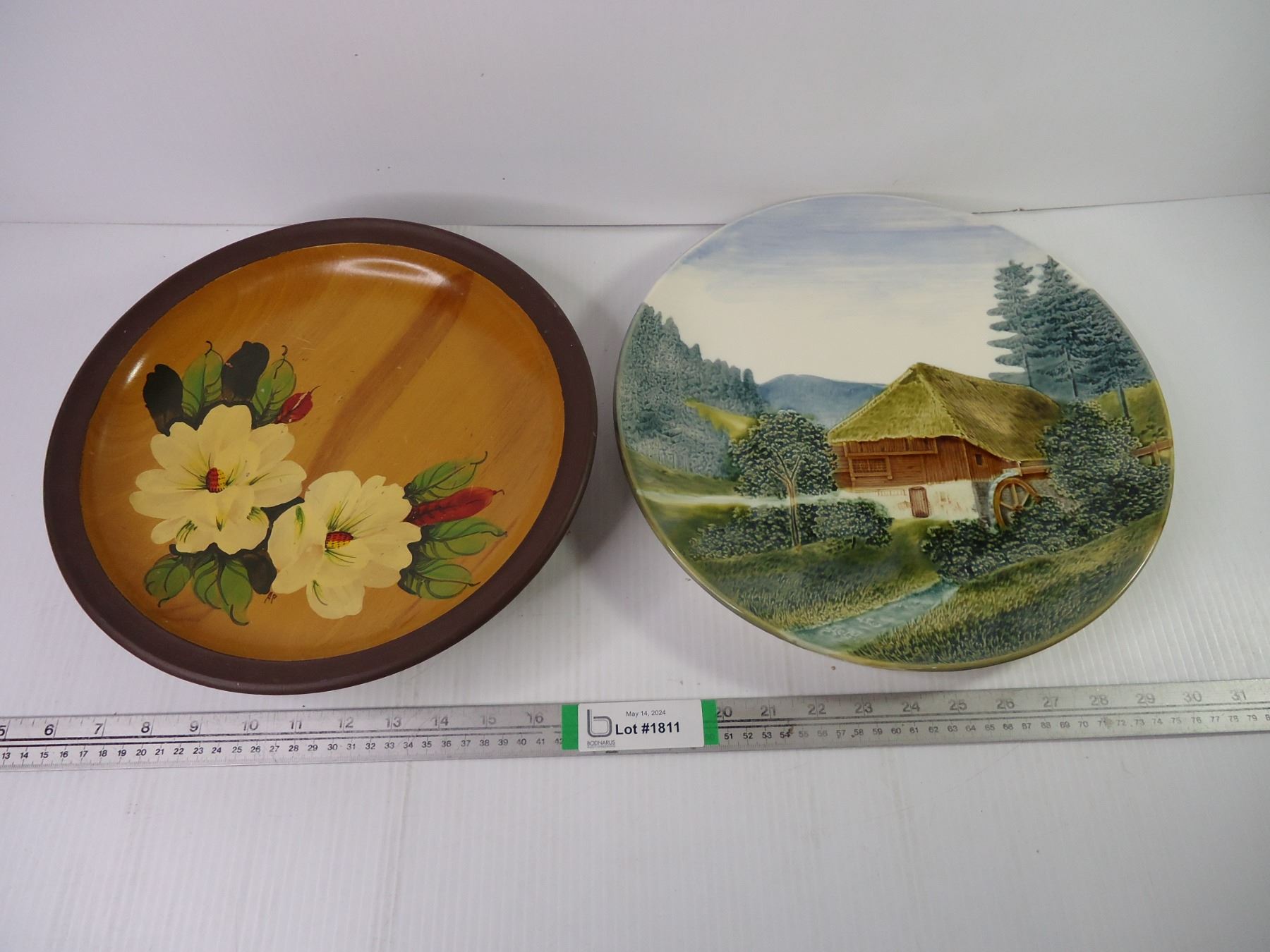 Vintage Collector Plate from Germany and Wooden Bowl Platter Hand Painted