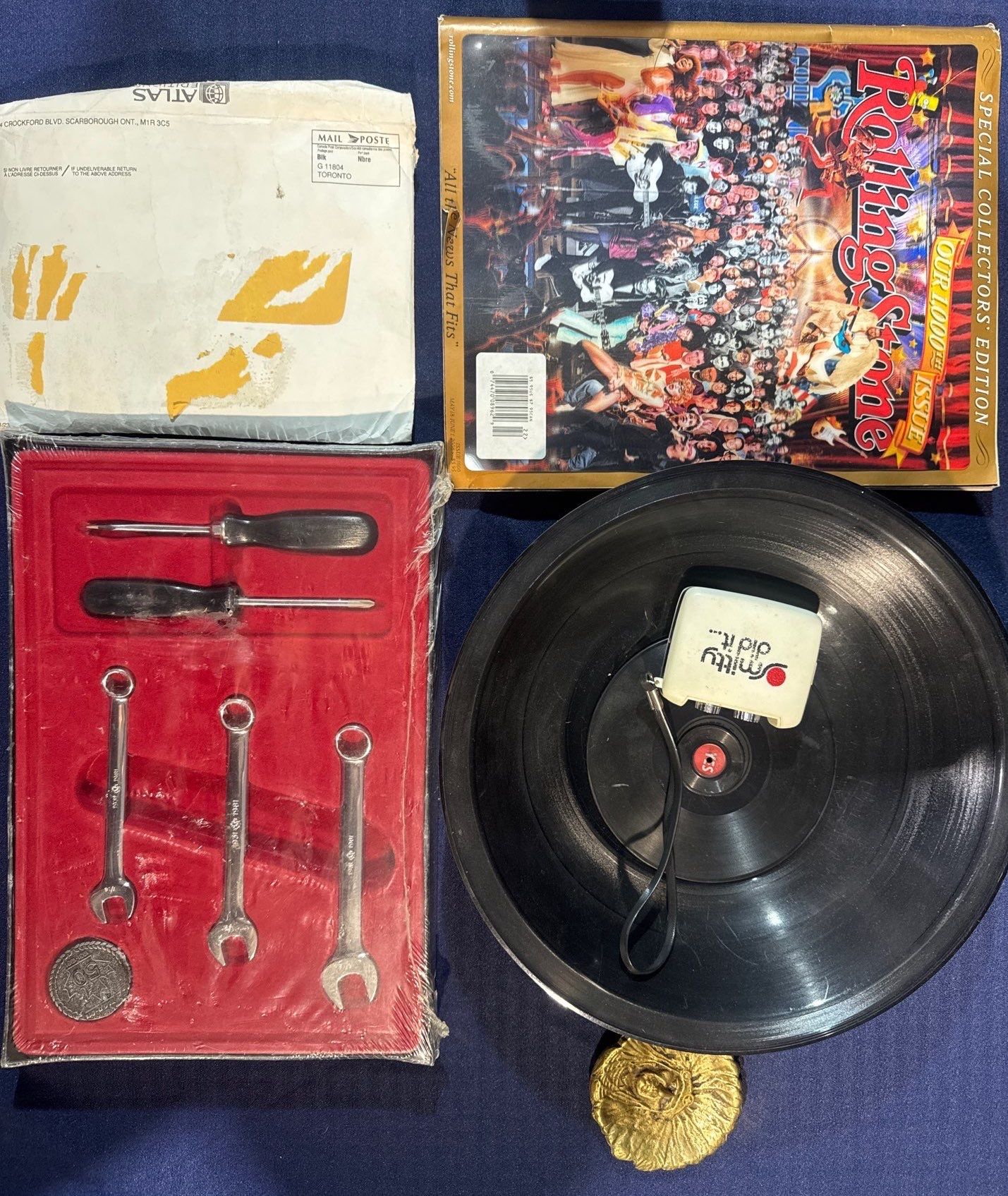 Vintage Collectors Edition Rolling Stone Magazine, Pocket Radio, Tools, Record Dish Bowl, And More