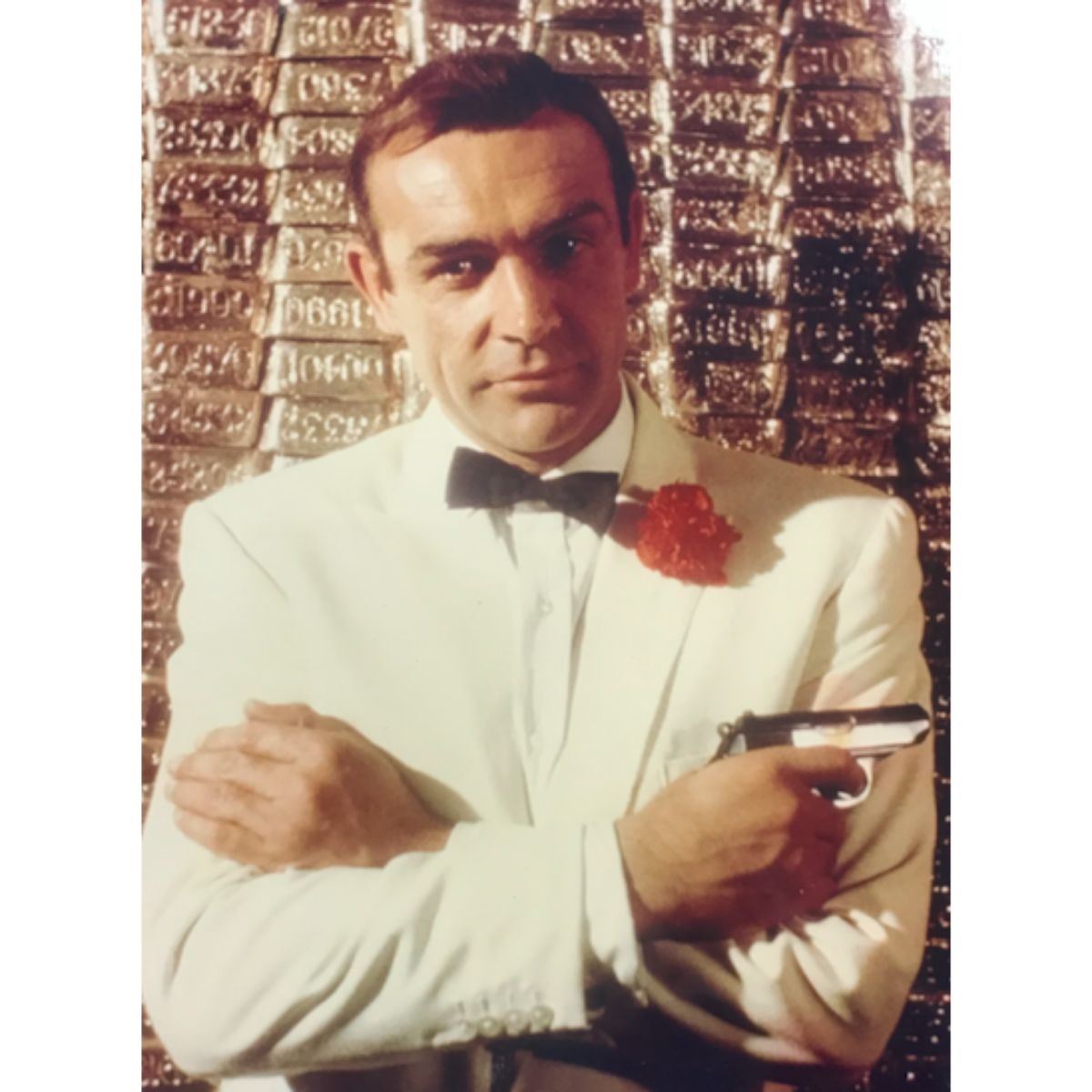 Vintage color photograph of Sean Connery as James Bond. Photo paper marked on the reverse, "Quality Paper, Made in Germany". 8" X 10".Â