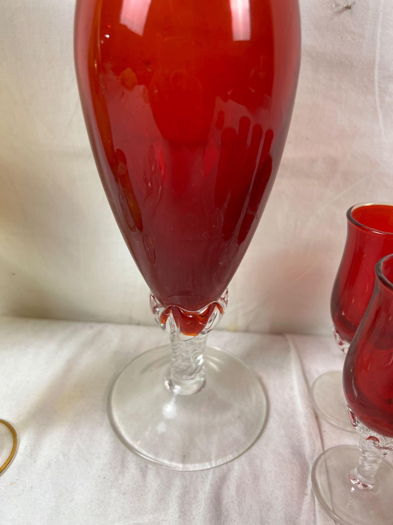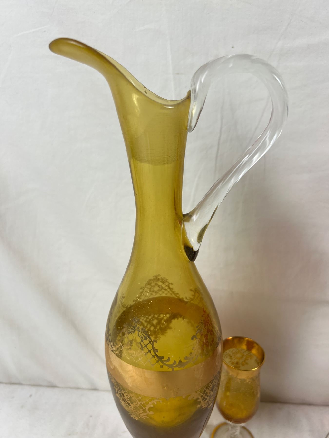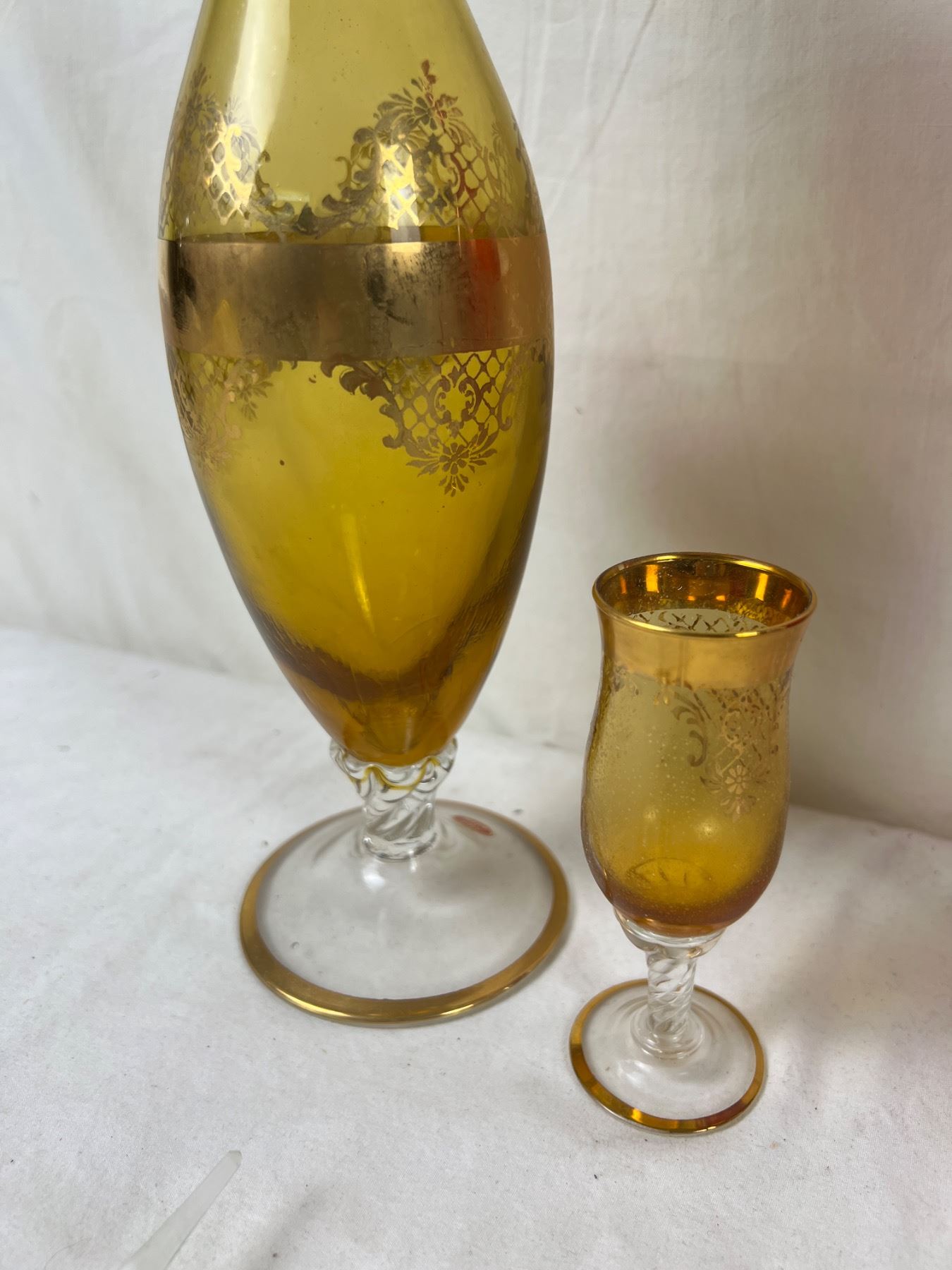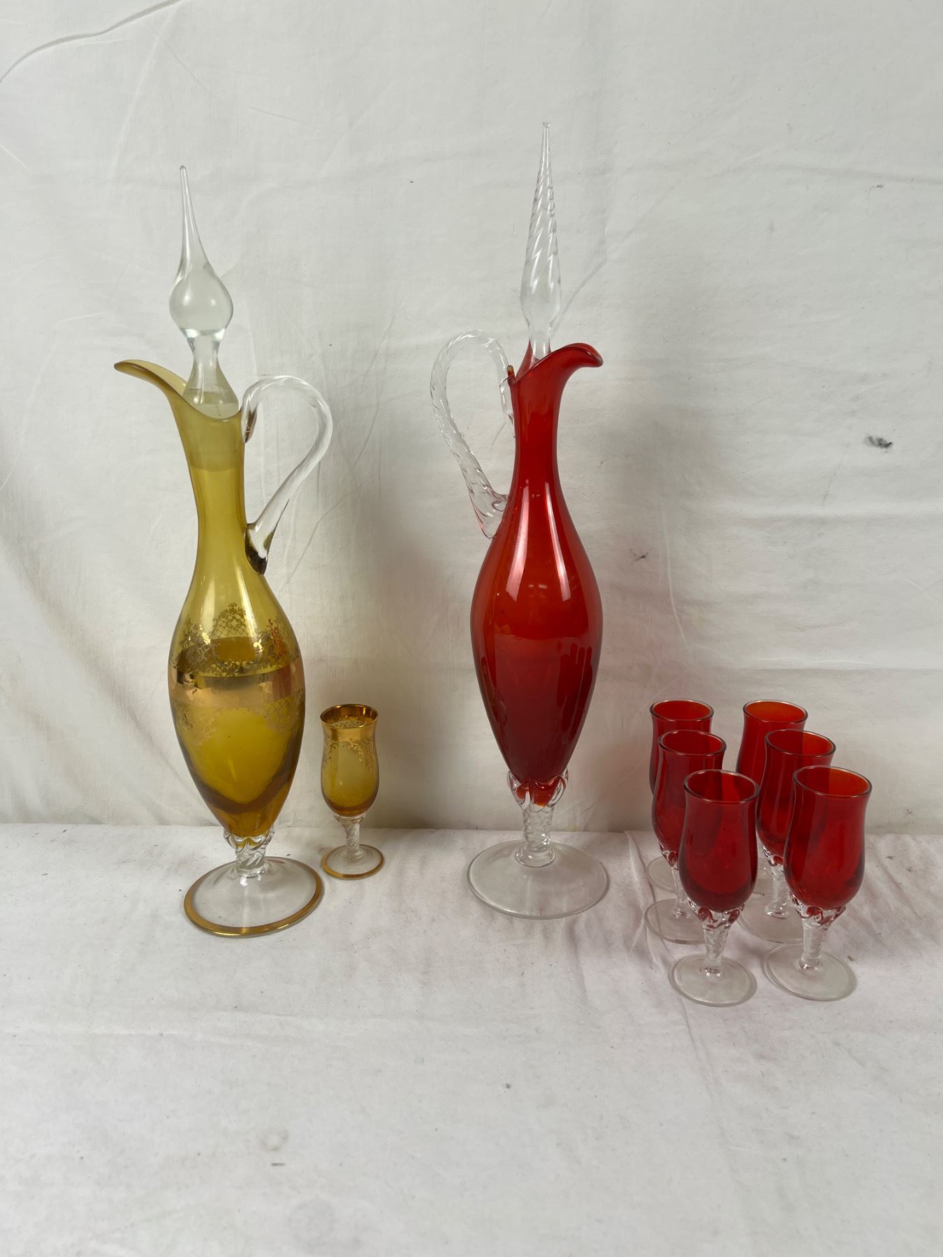 Measure 13" tall without caps. Amber glass is marked made in Italy.