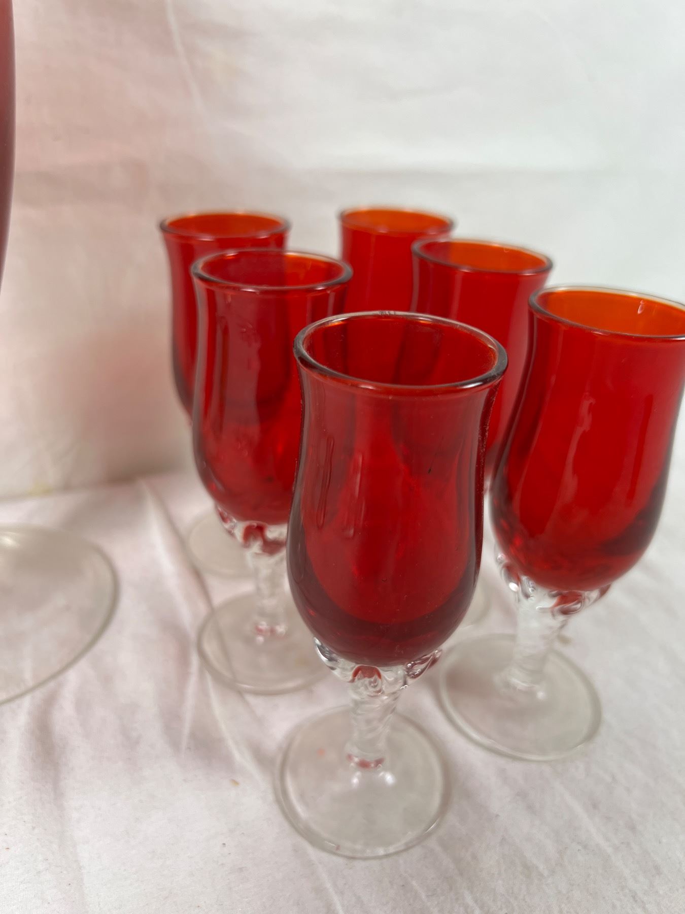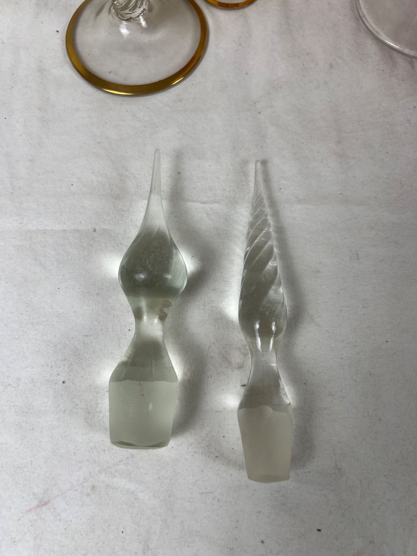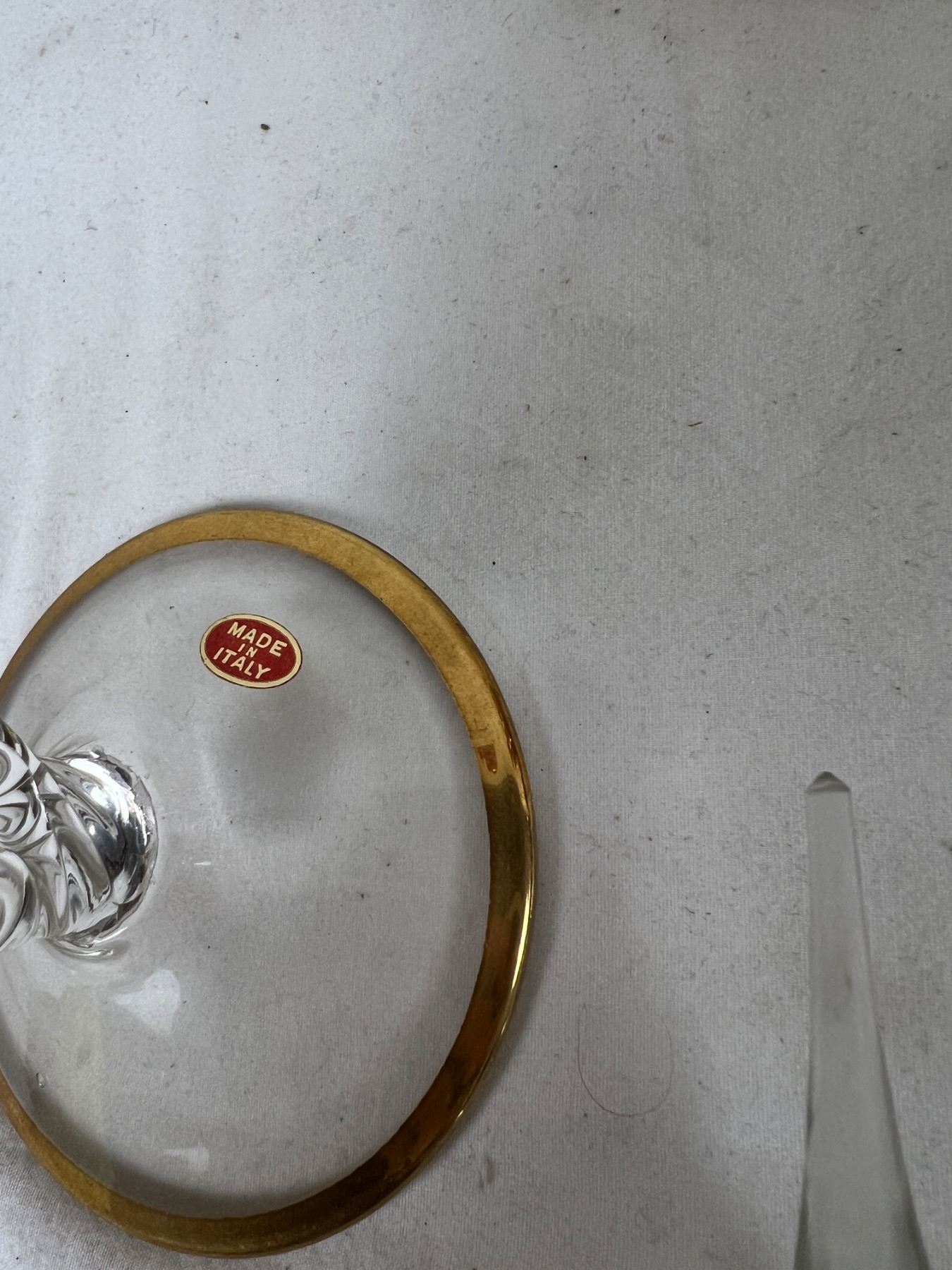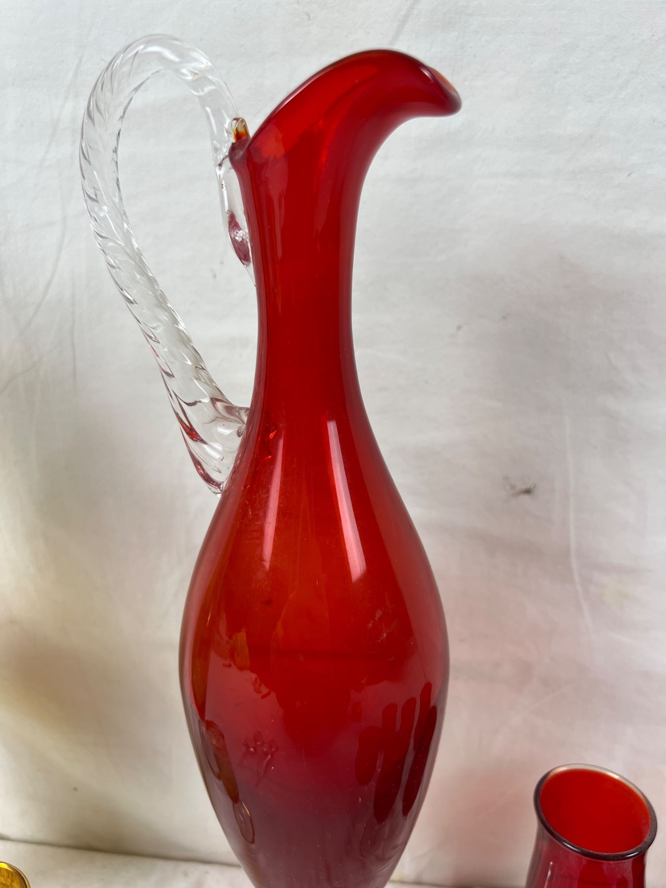 Measure 13" tall without caps. Amber glass is marked made in Italy.