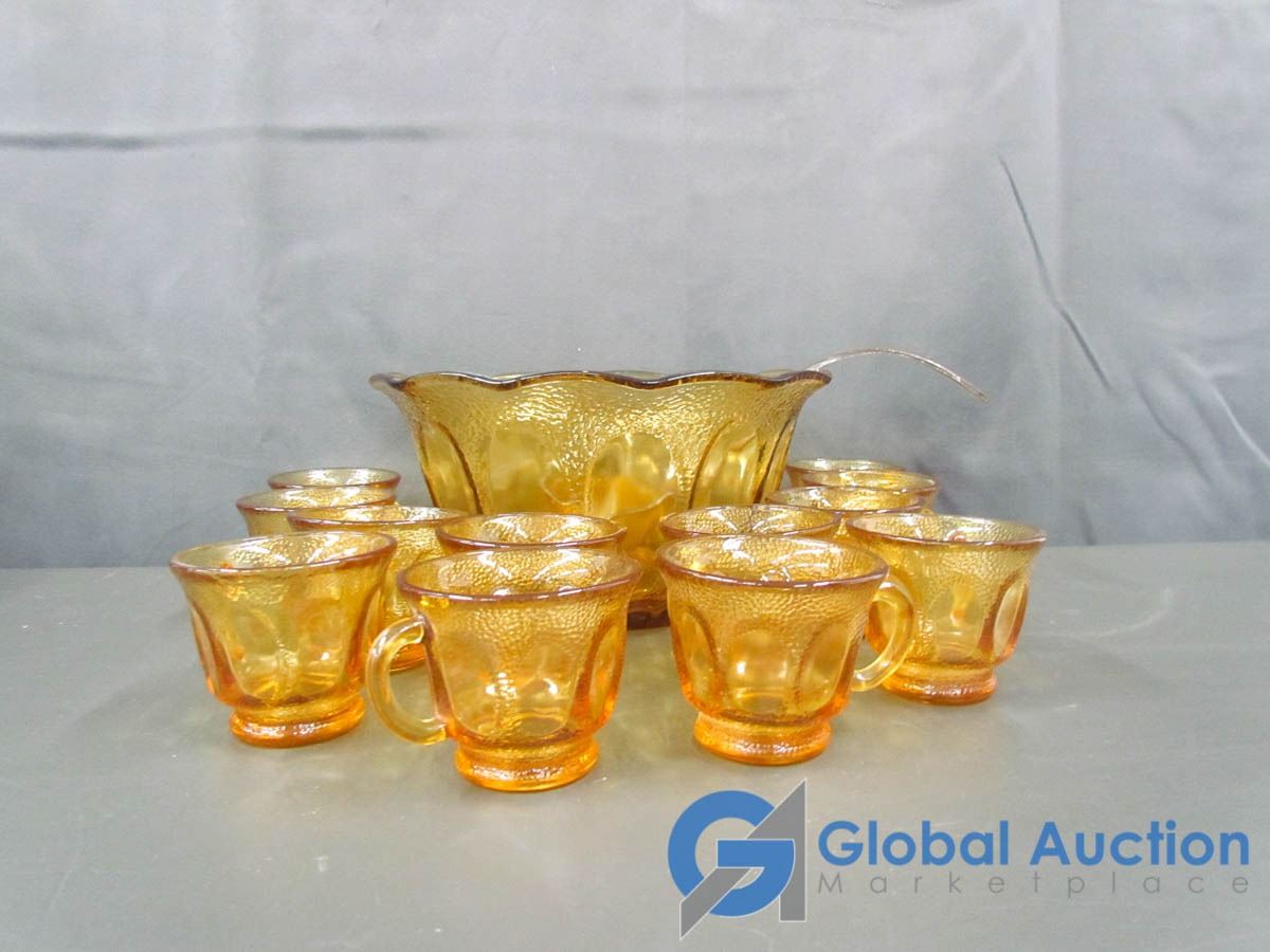 Vintage Coloured Glass Punch Bowl & (12) Cups Set