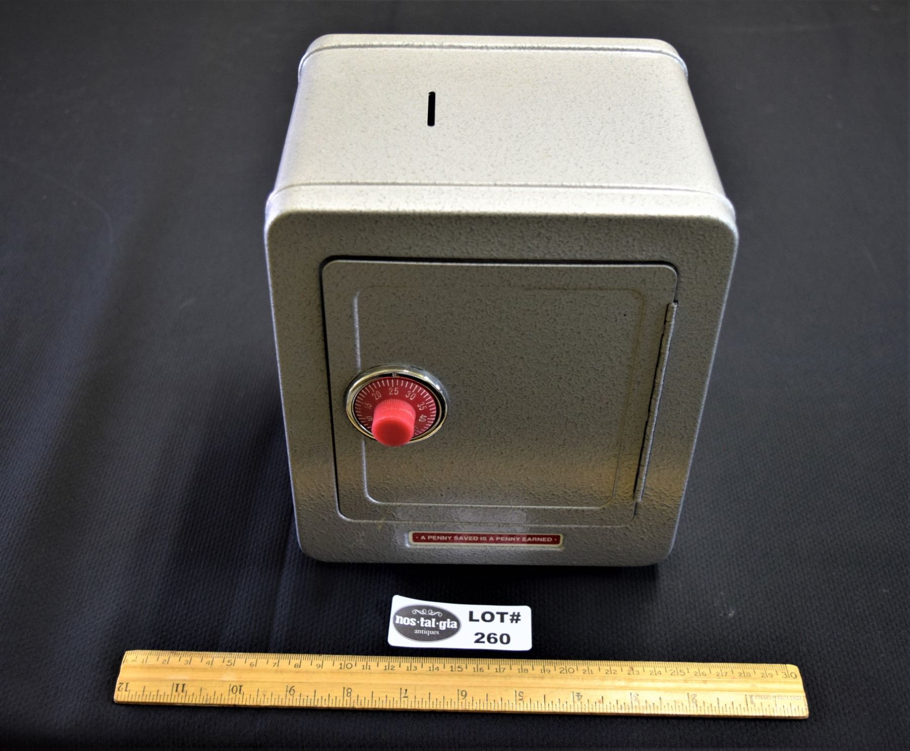 Working alarm that goes off when safe door opens. Combination for Lock is on the bottom of bank.