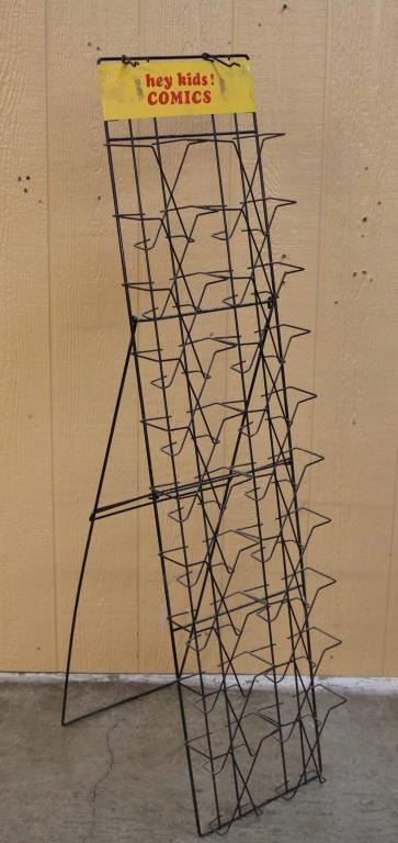 All metal construction 'Hey Kids Comics!' Measures 56" x 15" x 33" fold out floor display.