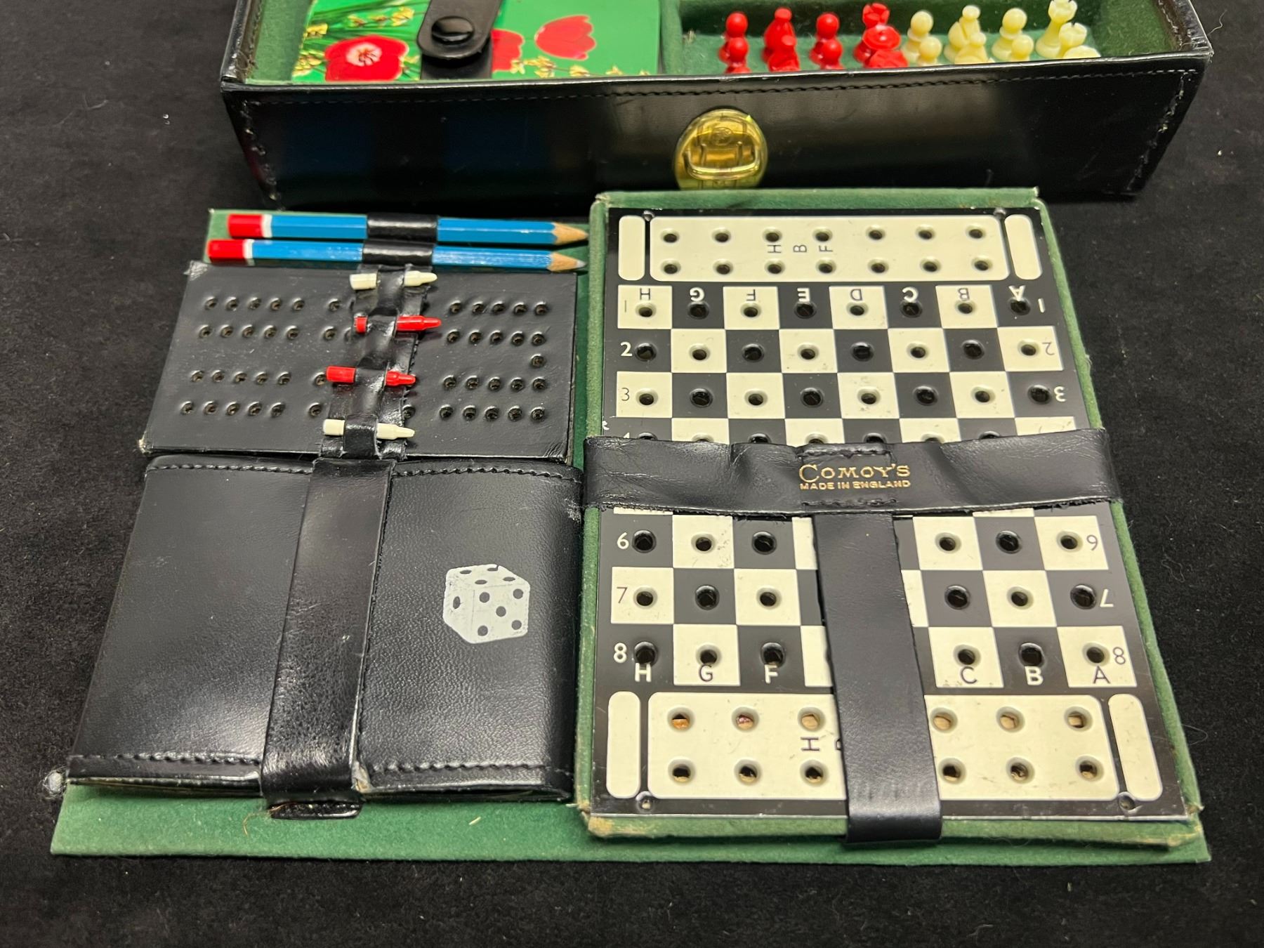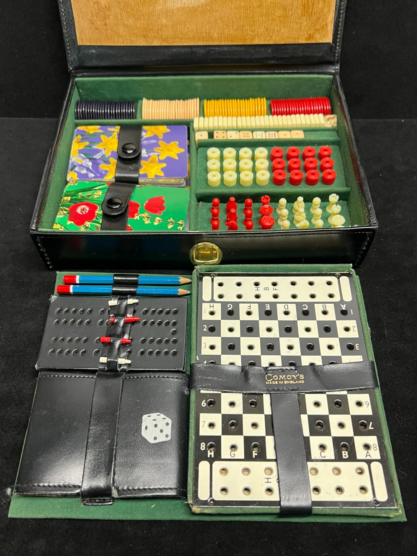 Vintage Comoy's England Game Set In Travel Case (Approx 8.5x6.5")