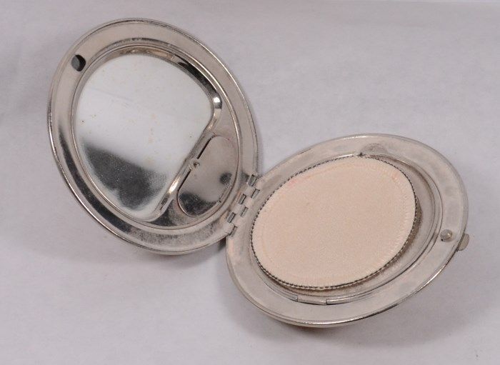 Measures 3.25" in diameter. "Rose" in script on the cover. There is powder in the compact, plus a small space for rouge or lipstick. Est. Value $25-$30
