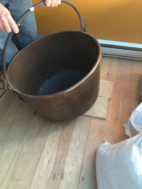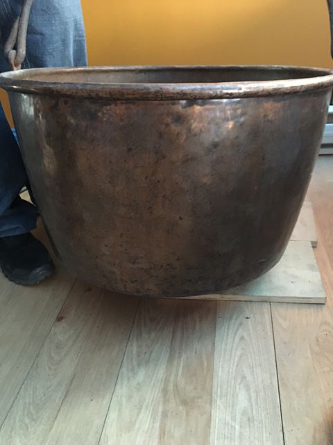 Vintage Copper Candy Making Pot, oversized 24" wide, hand crafted. This lot can be picked up in Woodbury CT for local buyers, or our shipper can pick up and ship to your location.