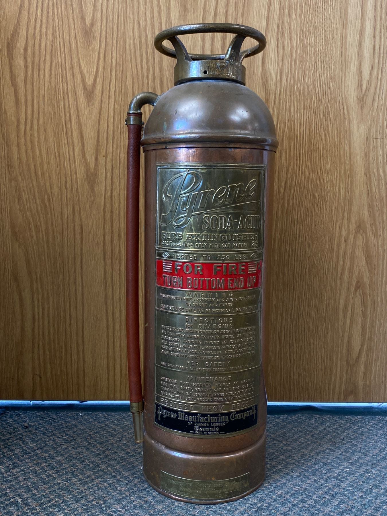 Vintage Copper Pyrene Soda Acid Fire Extinguisher Approx 24" H NO SHIPPING
