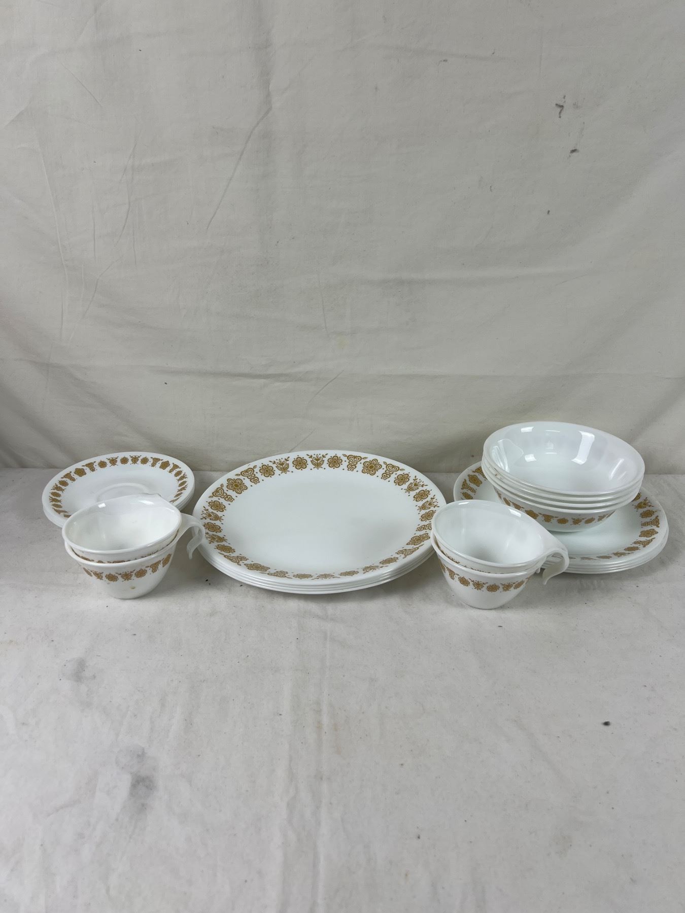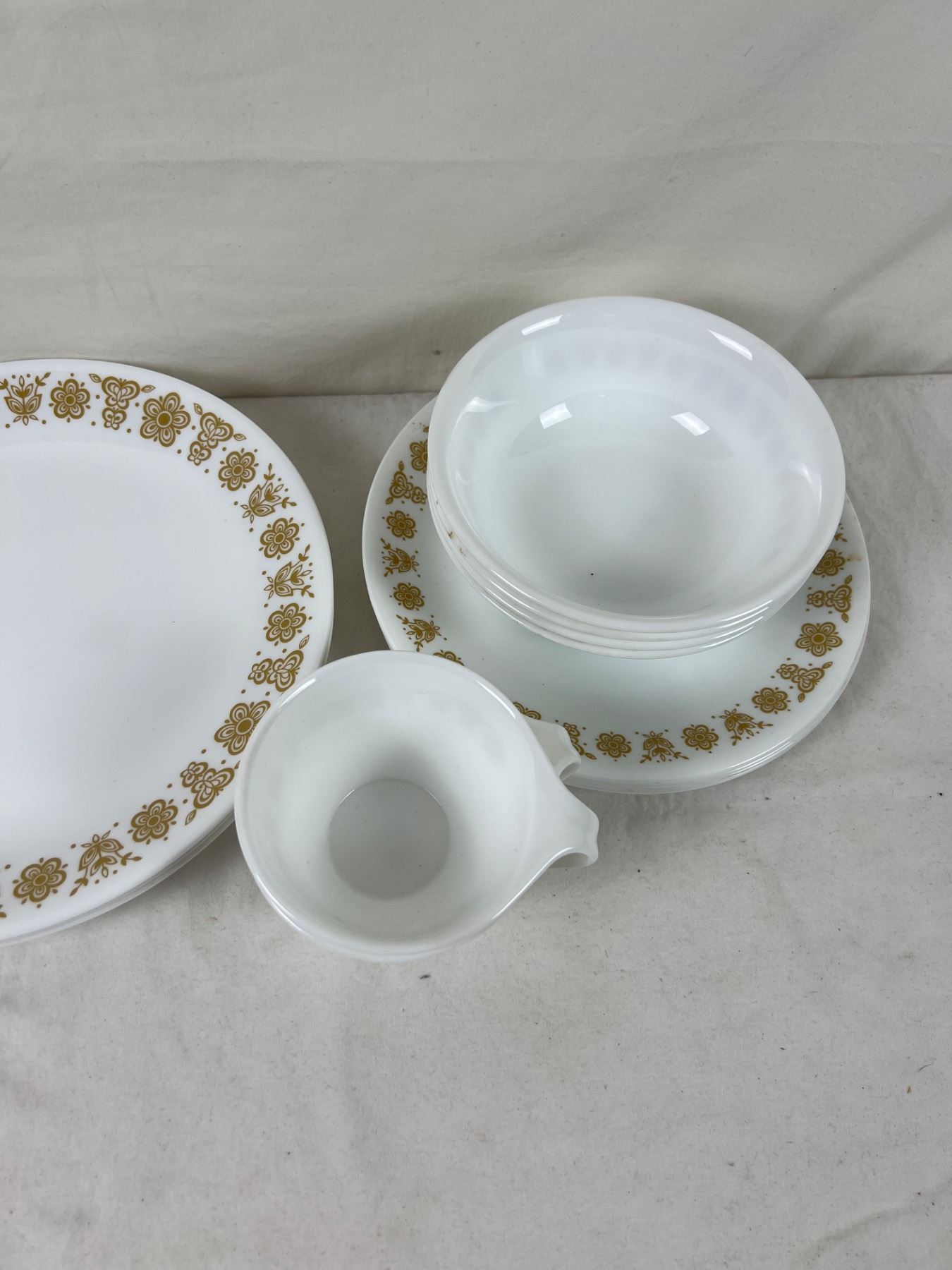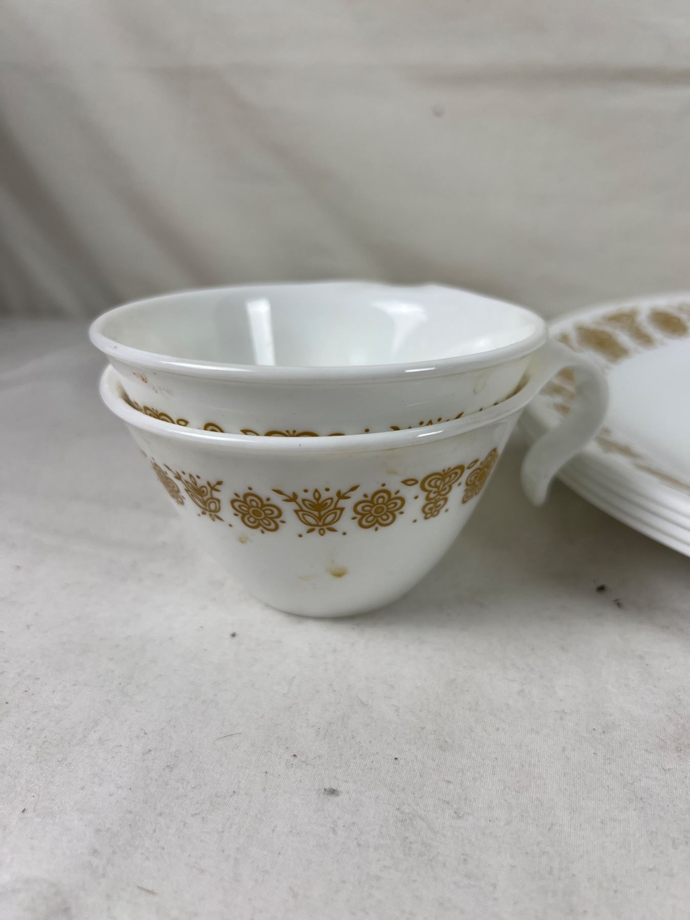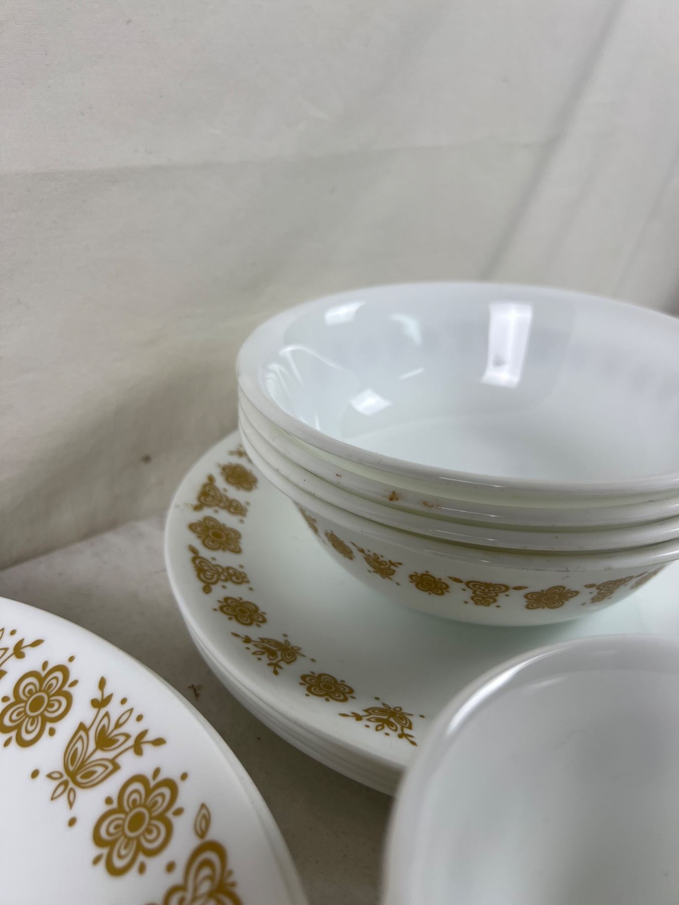 Style introduced in the 1970's. Largest piece is 10" in diameter. Some stains to bowls and small cup/bowls.