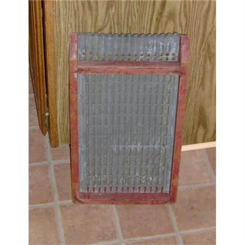 This corn sorter was the type used on farms for decades. Kernels of corn were put through the individual slots of the corrugated steel backing. Both front and back pieces are corrugated steel within a wooden frame.<p>
