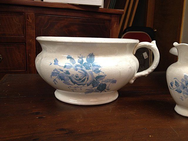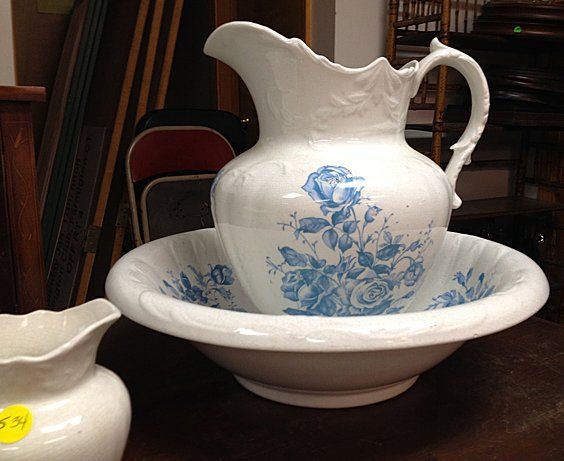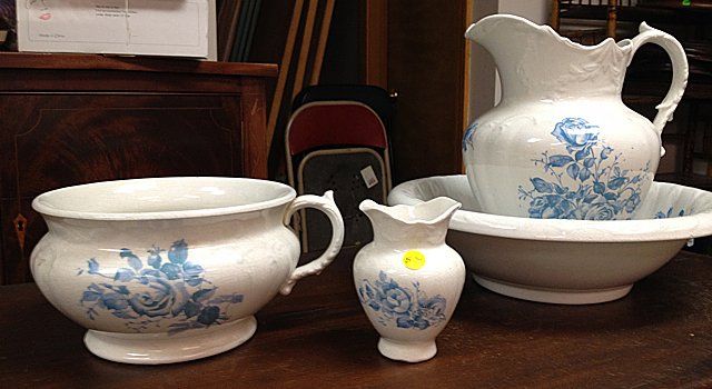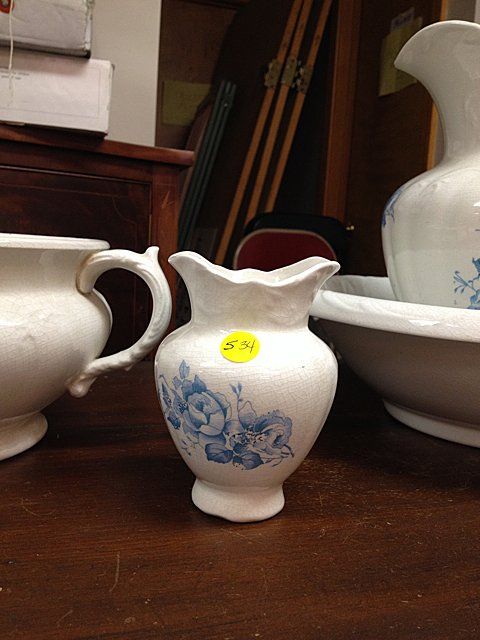 Vintage matching Cornell Set including wash basin and pitcher, vase and bowl