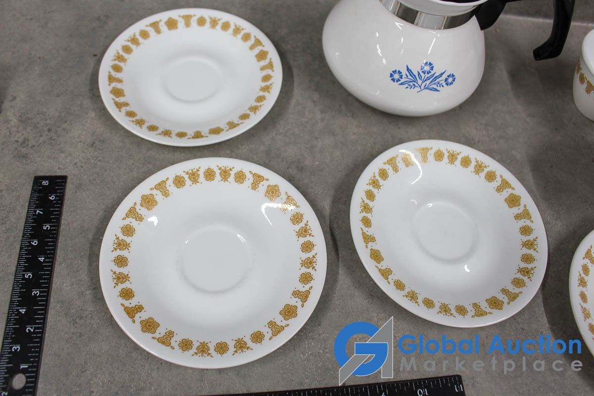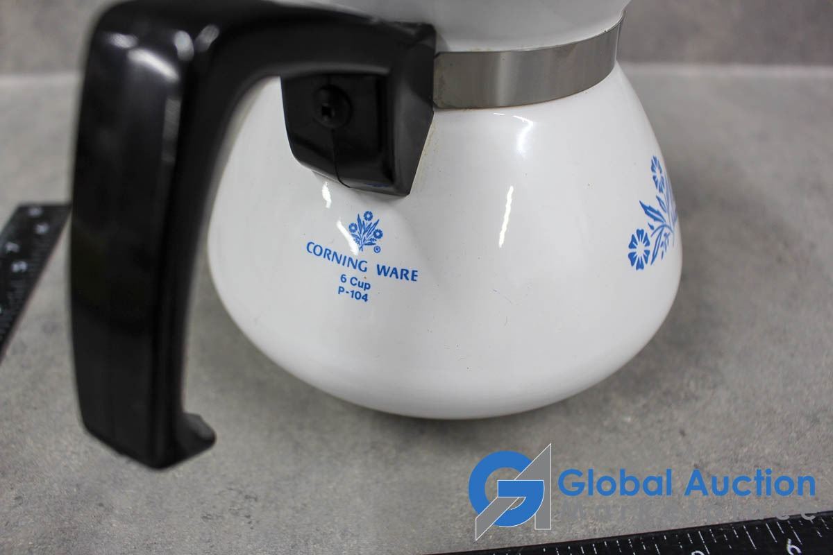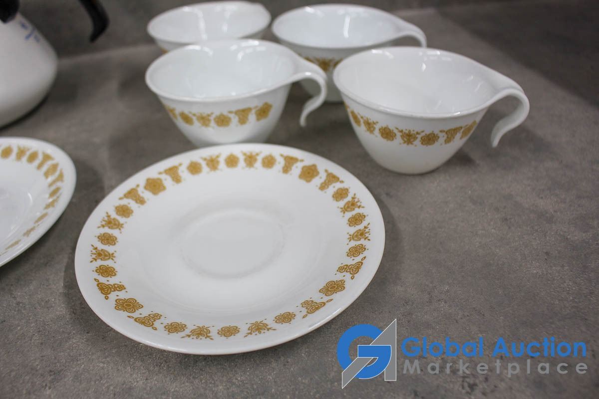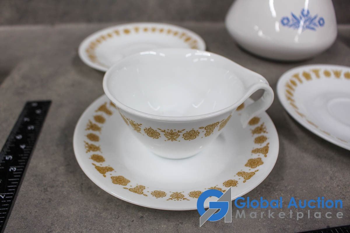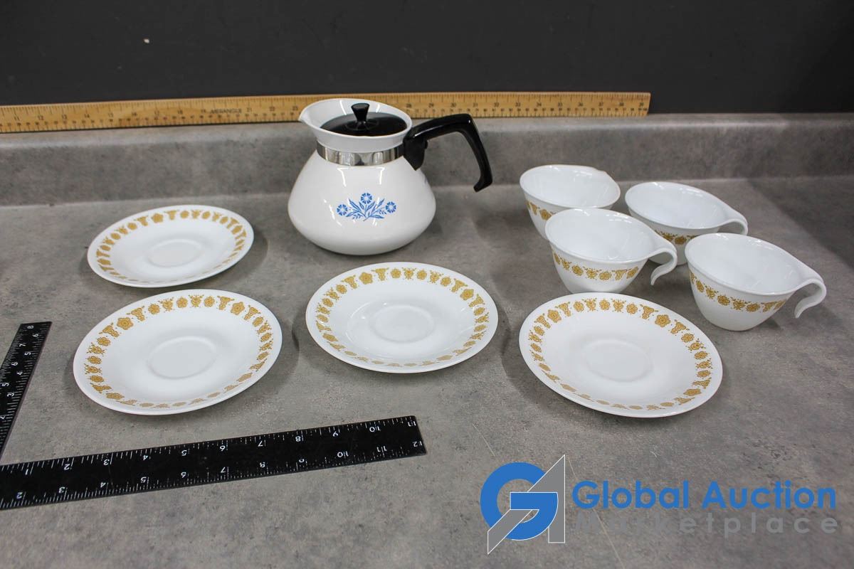 Vintage Corningware Tea/Coffee Pot & (8) Piece Corelle Cup & Saucer Set)