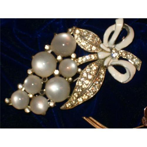 open the bid and you just may win.</em></td></tr><tr> <td width="100%"> A large Coro lucite moonstone brooch with an enameled bow in very good signed condition.