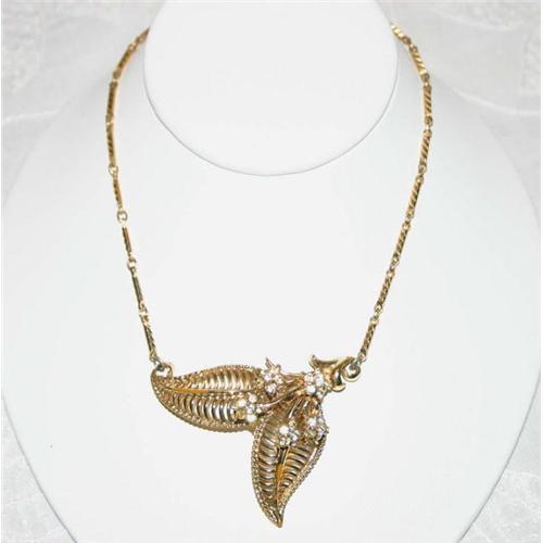 <tr><td>Title:Vintage Corocraft Foliate Rhinestone Necklace</td></tr>