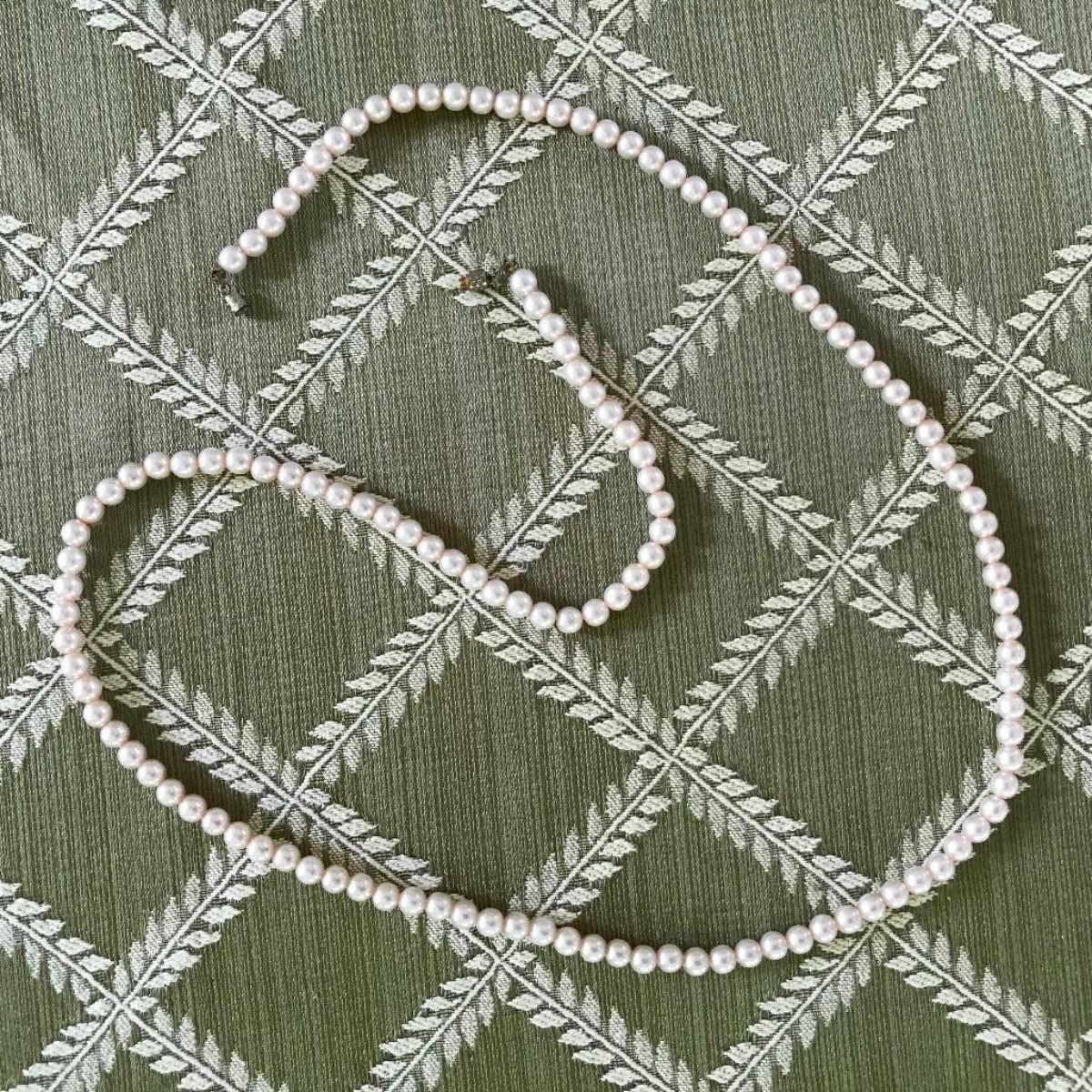 Vintage mid century, costume FAUX pearl necklace. 30" opera length strand with screw closure.