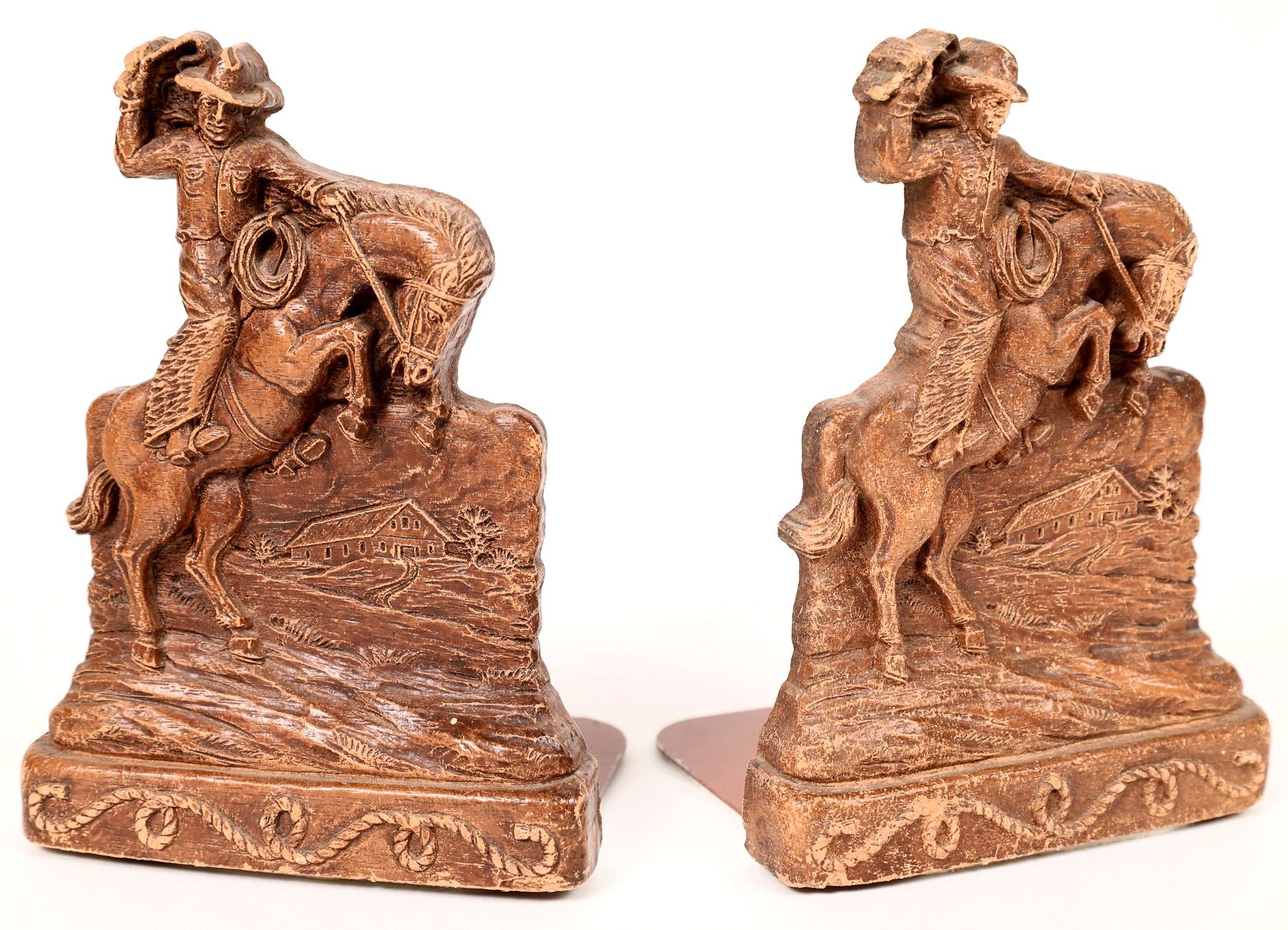 Pair of vintage cowboy bookends, non metal and cast from a mold. 6.25x4.5".