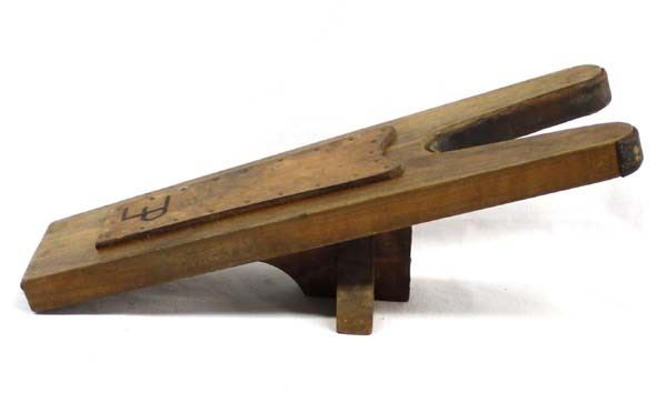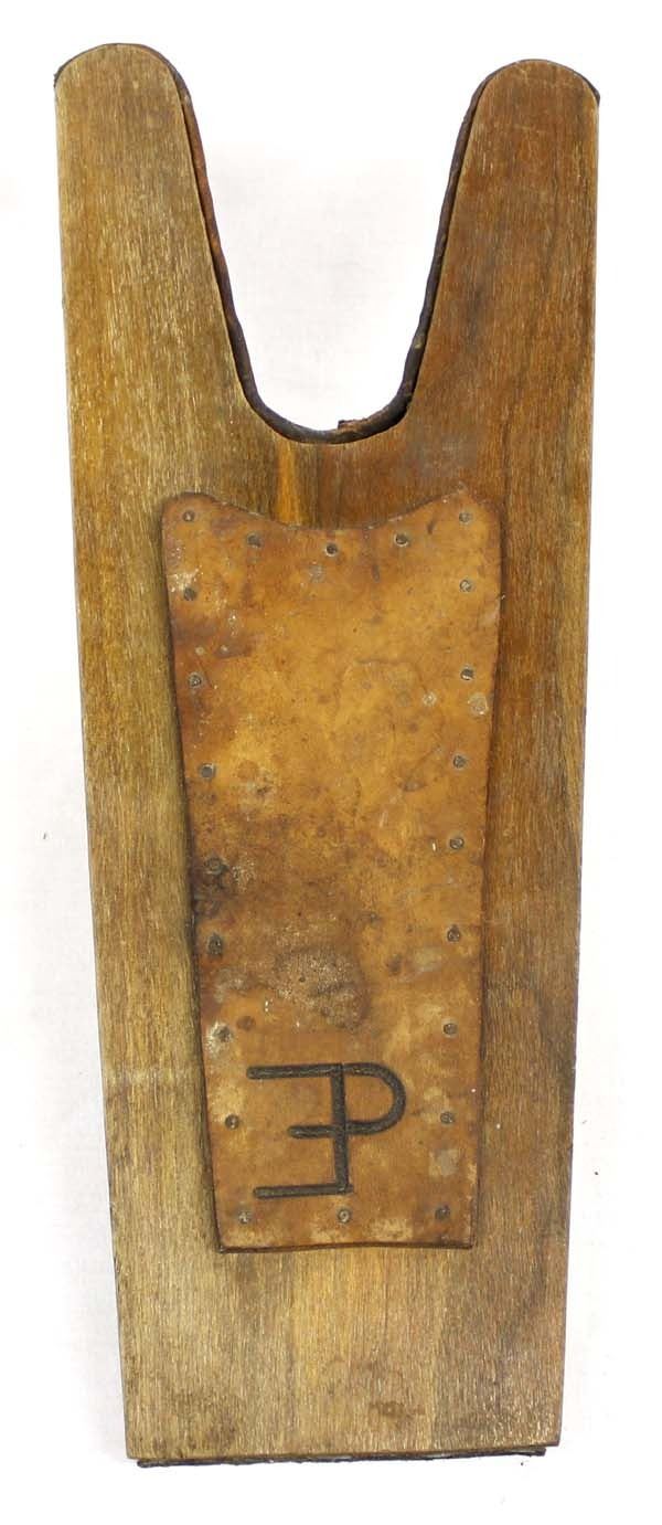 Antique/Vintage Cowboy Wood and Leather Boot Jack, has brand tooled into leather, measures 5.5'' x 15'' x 5.5''