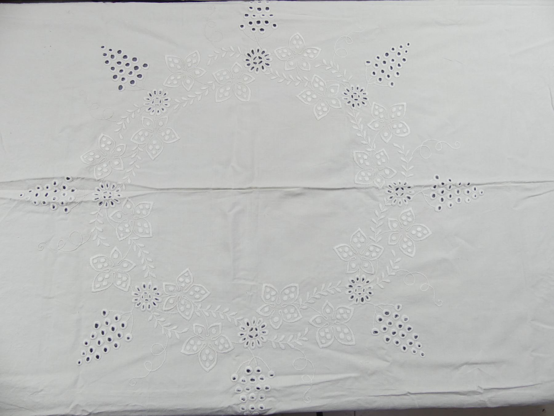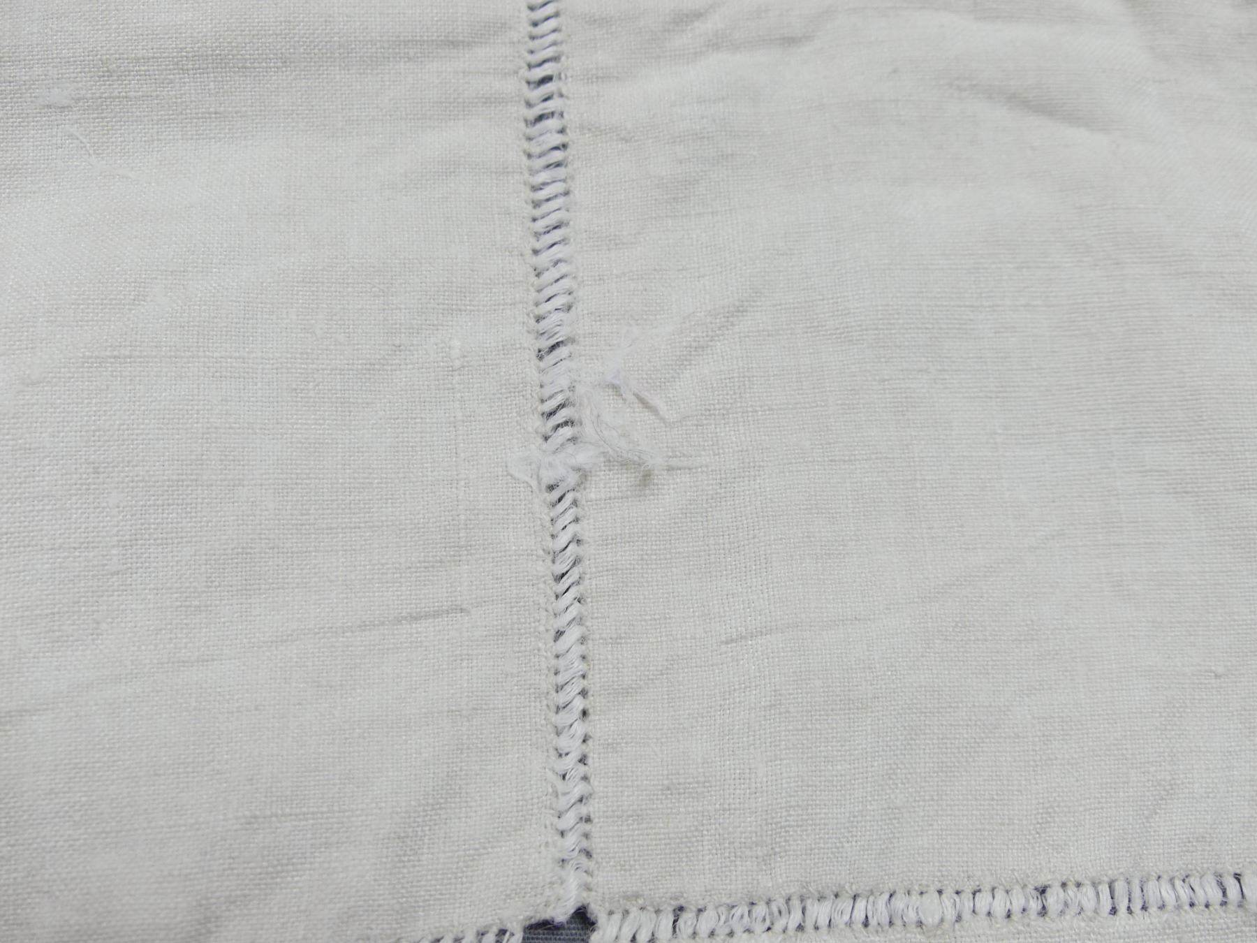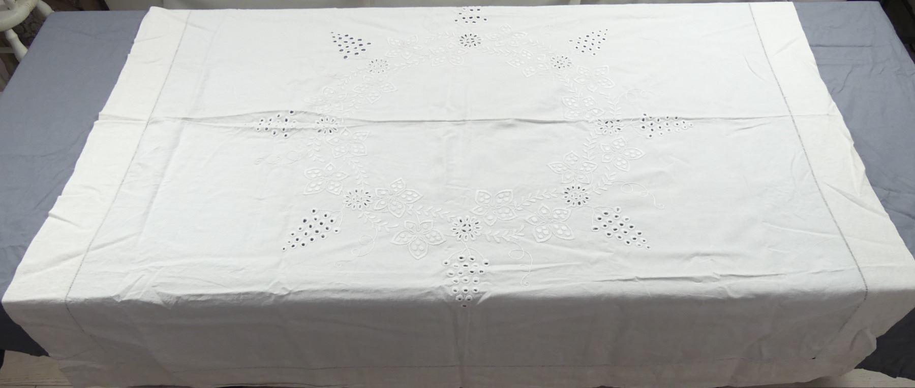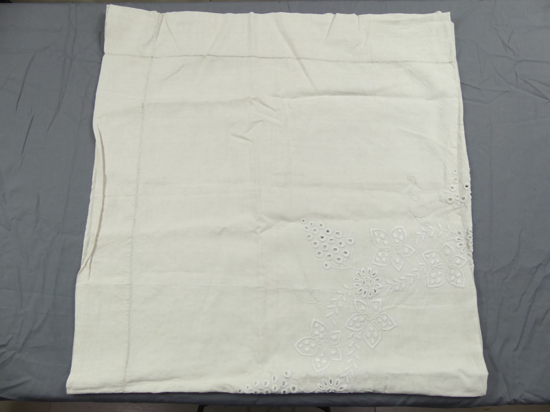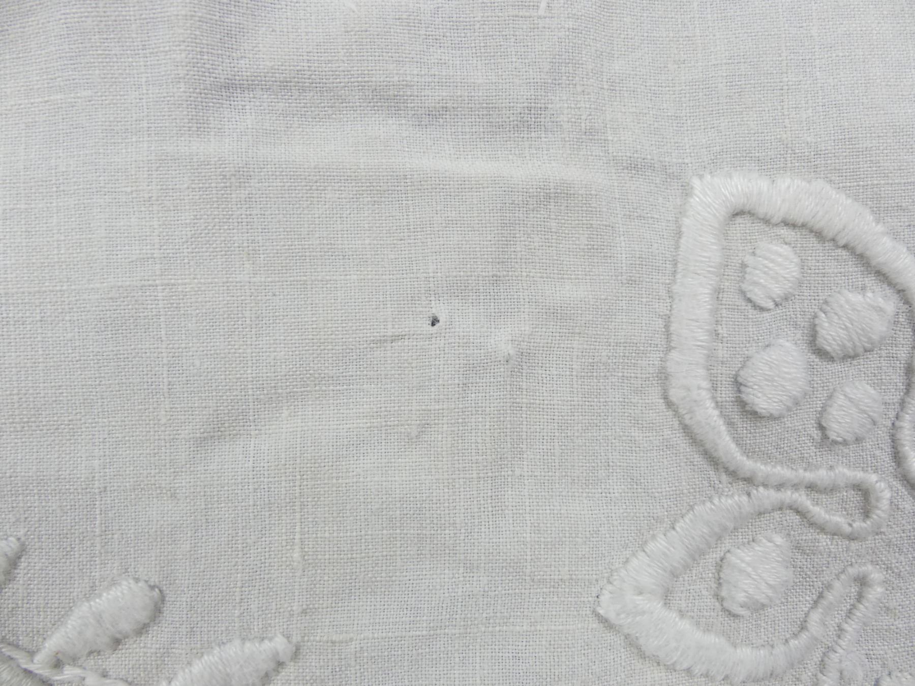 Vintage Cream French Linen Tea Cloth/Table Topper with Embroidery
